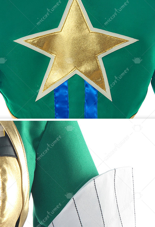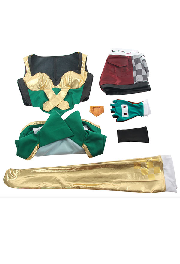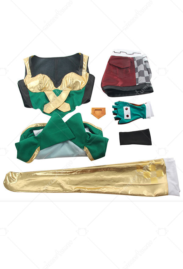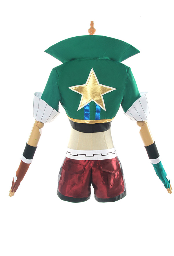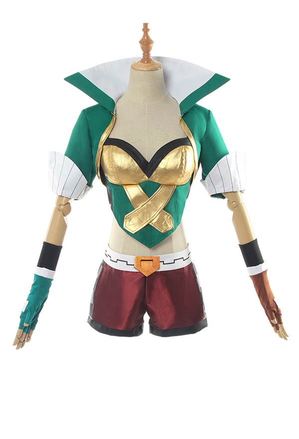 The costume includes top, coat, shorts, stockings, glove*2, bracer*2 and accessory. It is made of high imitation fabric.