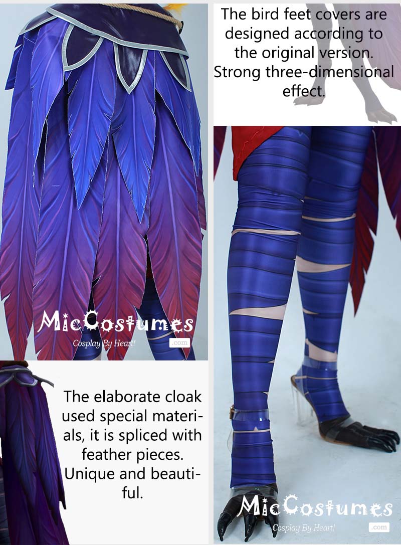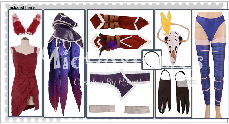 | Included Items | Ears, cloak, dress, belt, stockings, bird feet covers, skull decoration, plastic headband |