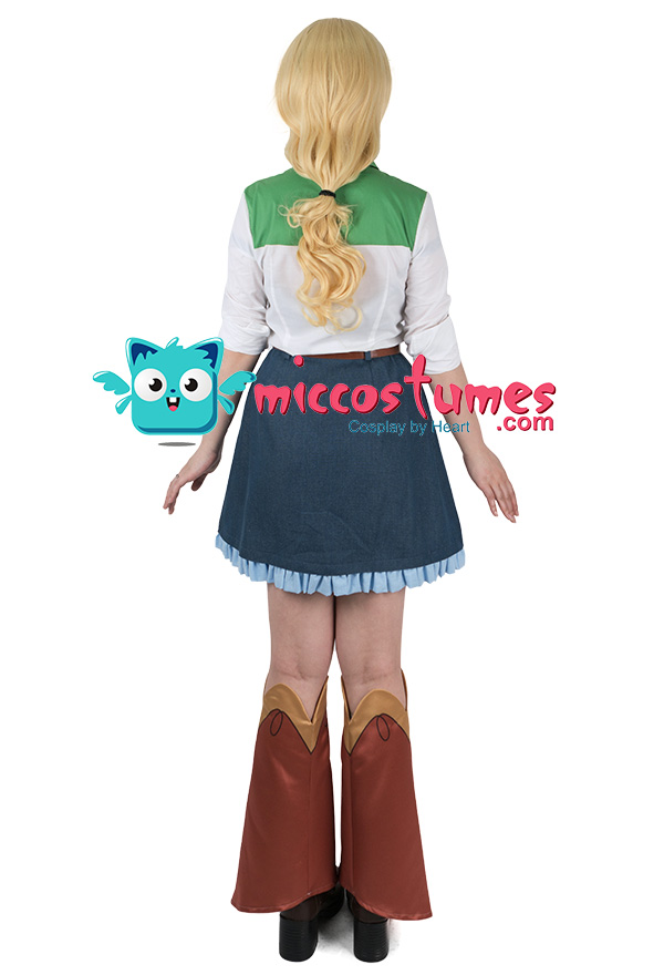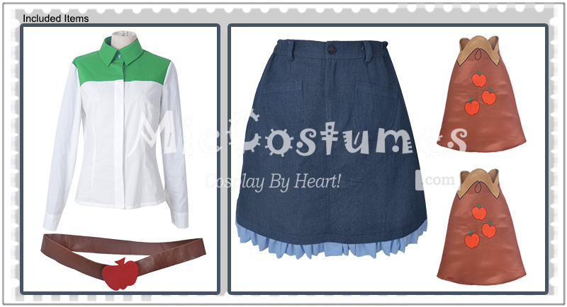 Please understand that some parts of the accessories are different from the images. There may be some minor alterations. This costume includes colorblock shirt, denim skirt, belt, printed shoe covers×2