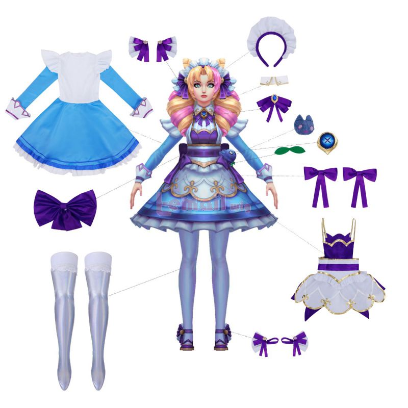 Included: Dress, sling skirt, headwear, collar, bow tie, waist with bow, ragdoll, leaf, bow behind, jewels on the bow, headband, leg decorations, socks
