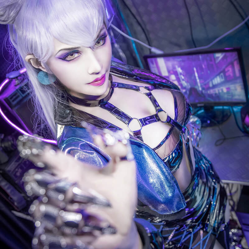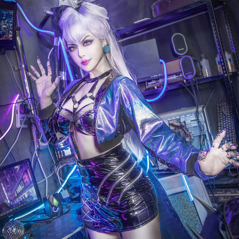 Features: This cosplay costume is based on the character Evelynn from LOL KDA ALL OUT. It can be used in cosplay convention and halloween party.