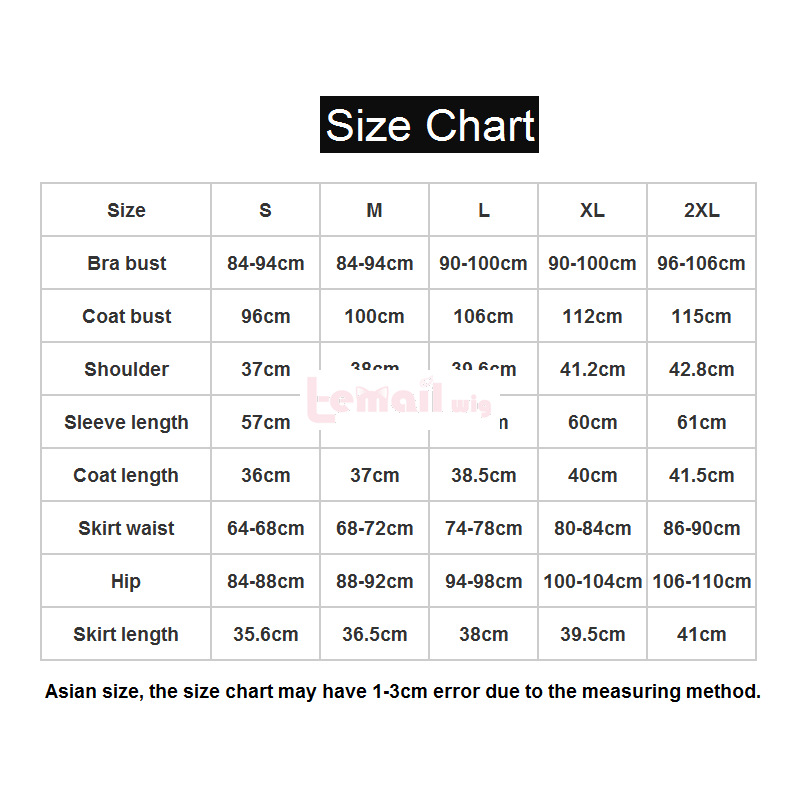 Included:Bra, leg ring, coat, socks, wristband, skirt (Don’t include prop)