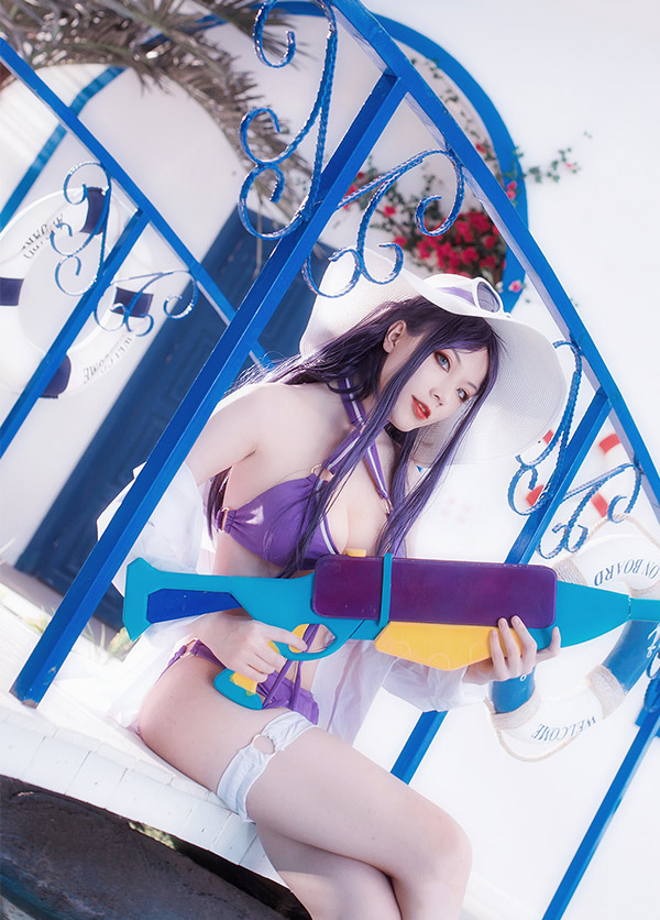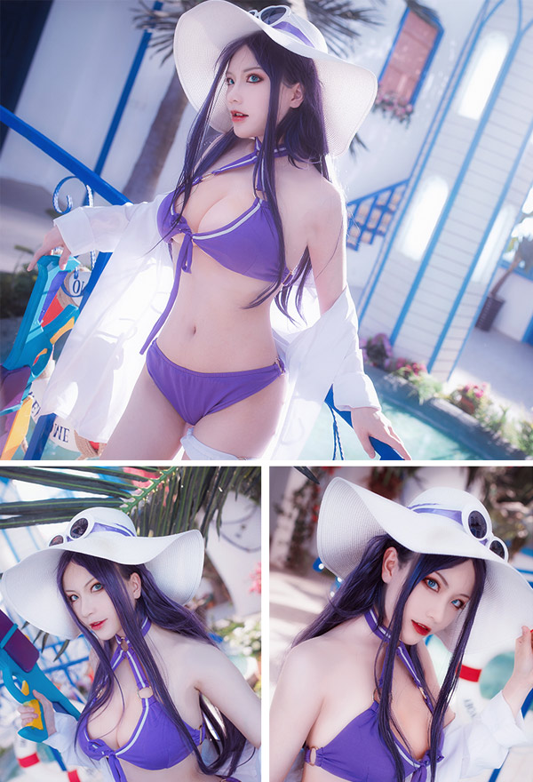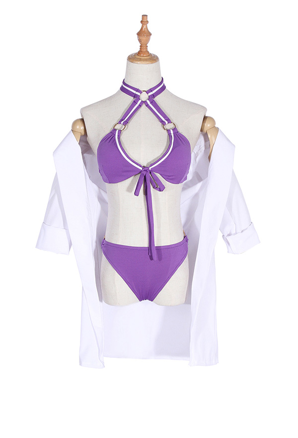 This costume includes swimsuit and coat.It is made of milk silk and chiffon.