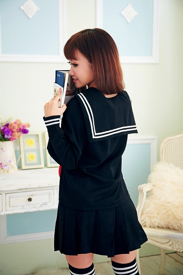 K Japanese School sailor uniform fashion school class navy sailor school uniforms for Cosplay girls suit 2 Pcs / Set
