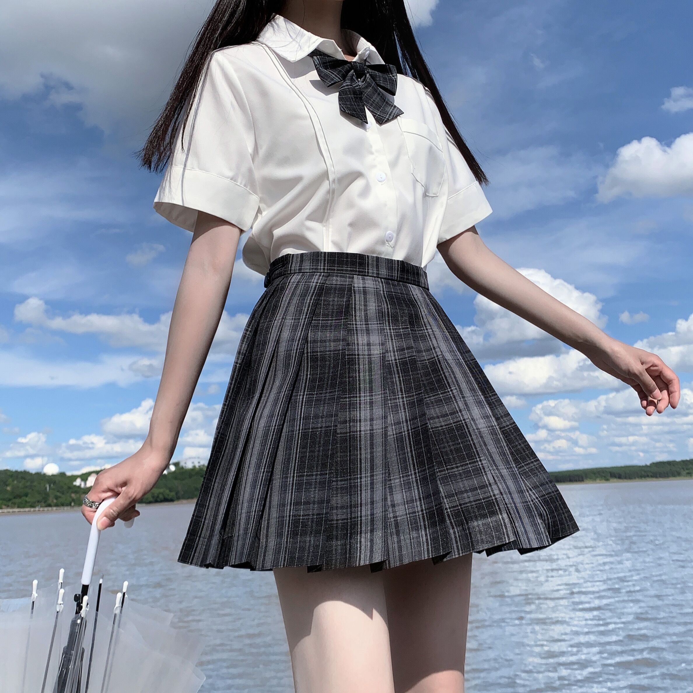 D =White 2 Pcs (shirt + skirt + scarf(Gift) + (Socks )