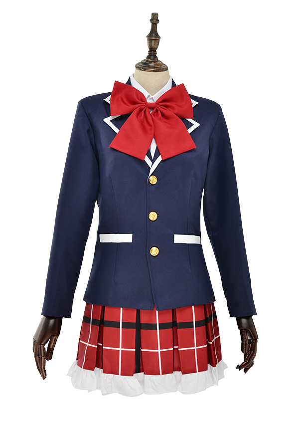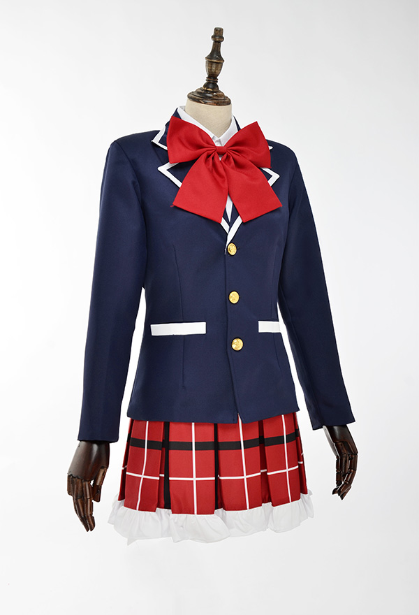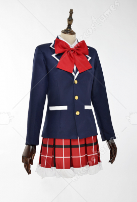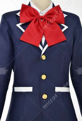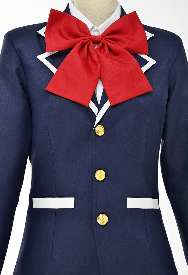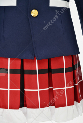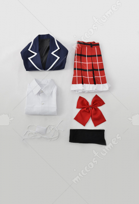 The costume includes coat, shirt, skirt, bowknot tie, eyepatch, stockings. It is made of uniform cloth.