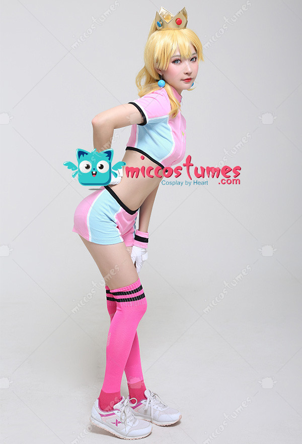 The costume includes top, pants, glove*2, socks*2, crown, earring*2, wristband*2. It is made of PU leather, knitted fabric, EVA.