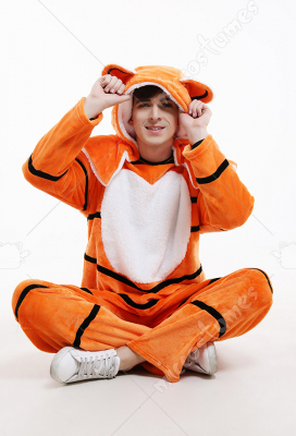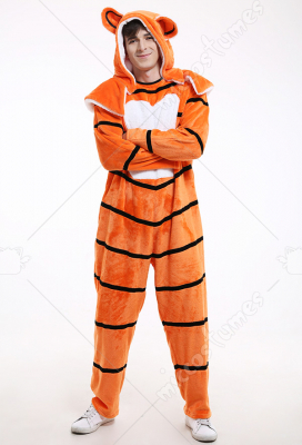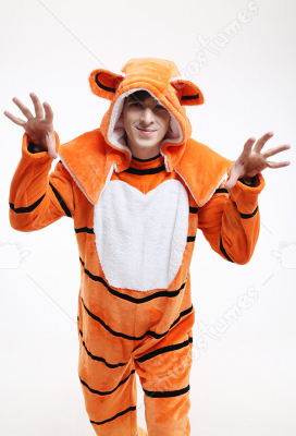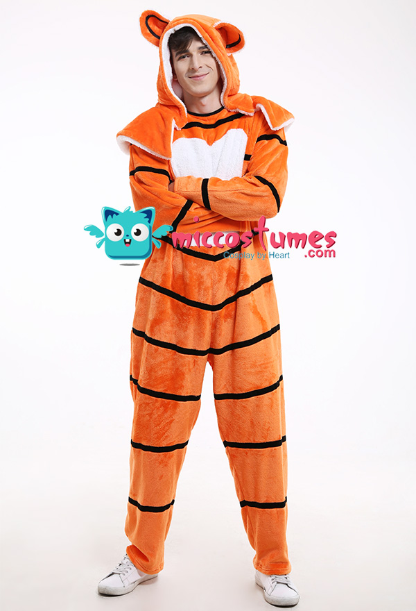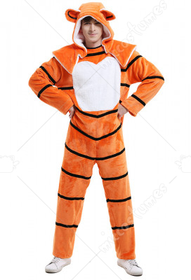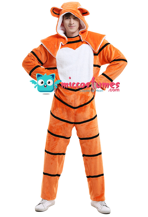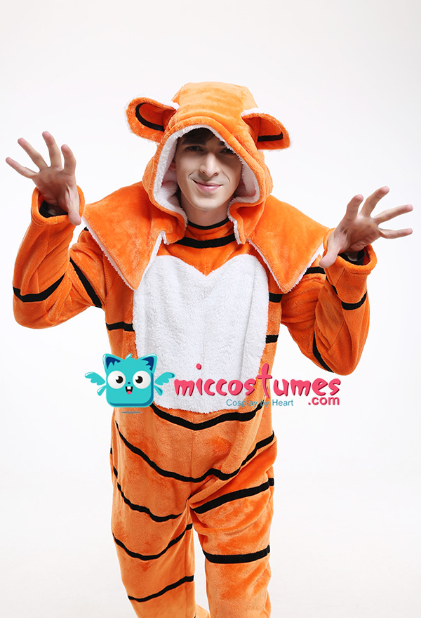 Costume Includes: Tiger Onesie Bodysuit, Sleeve Cap. Material: PU leather, artificial fur. Design Details: The costume adopts soft material of homewear, which can also be worn in daily life.