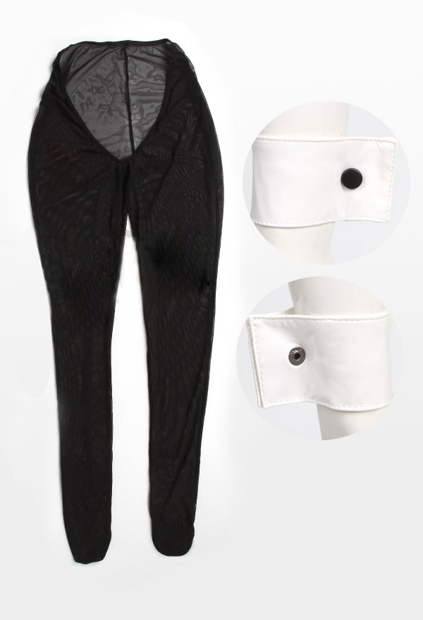 Costume Includes:top,bra,pantyhose,tail,tie,bow,wristbands*2,pasties,stockings,headdress,thong.Material:patent leather,net yarn.The Length of Stockings is 87cm.