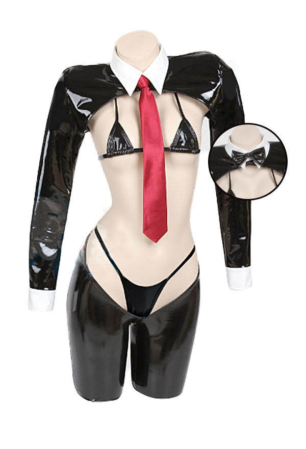 Costume Inlcudes:pasties*2,headdress,top,pant,bow,tie,bra,thong,tie.Material:patent leather Cosplayer:Zyra秋