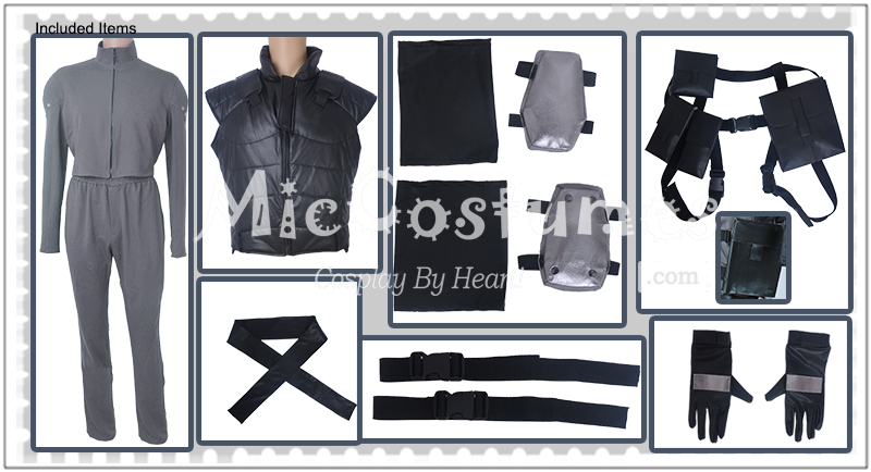 | Included Items | Coat, base shirt, trousers, belts set(waist bag×3, thigh holster bag), hand armor×2, thigh armor×2, headband, gloves×2, wrister×2, thigh-protectors×2 |
