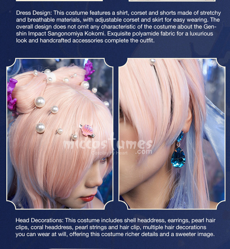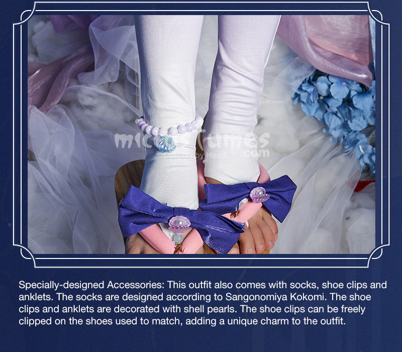 | Included Items | skirt, shell waist ornament*2, corset, detachable sleeve*2, back tail, shorts, socks, gloves, shawl, collar, shoe clips*2, anklets, shell headdress, earrings, pearl hair clips (18pcs), coral headdress*2, pearl strings headdress, hair clip*2 |
