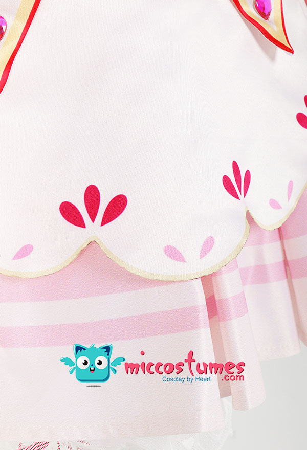Artist credit: akuoart. Design details:The whole body is digital printed, and the skirt is elastic at the waist. Both sides of the top are zipped for wearing on and off. There are pins in the tail bow for wearing. The lantern sleeves and petal sleeve are elastic for adjustment, the neck ornament is equipped with Velcro. And the flowers on the chest are handmade. Note: The pre-sale quantity is only 5. It is normal if the order is delayed, please contact our customer service for processing.