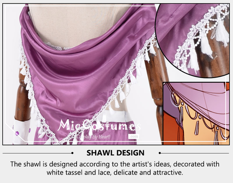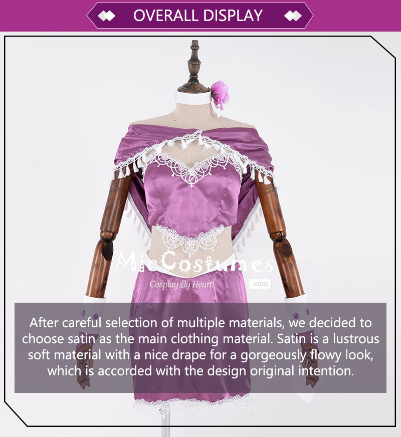 | Included Items | Skirt, tube tops, shawl, gloves, choker, headdress |