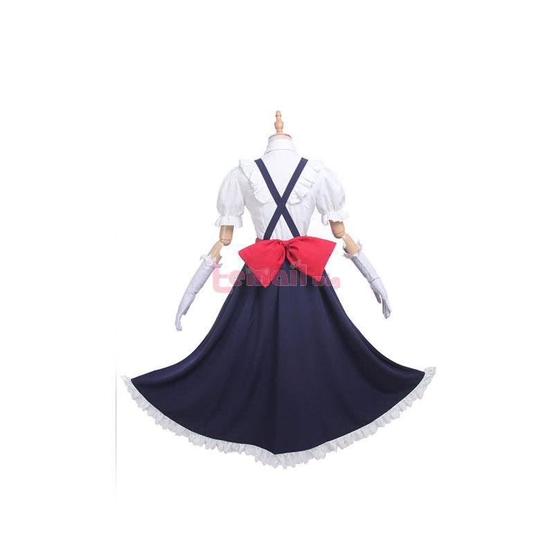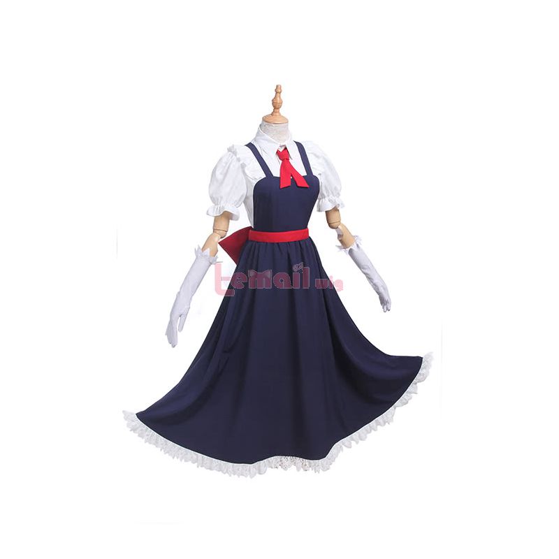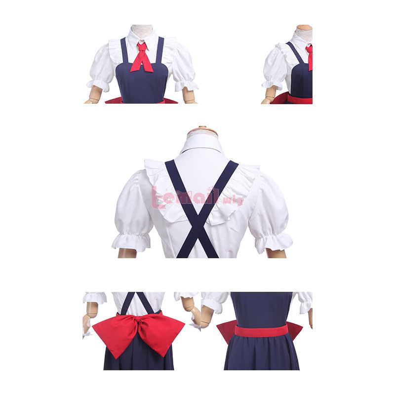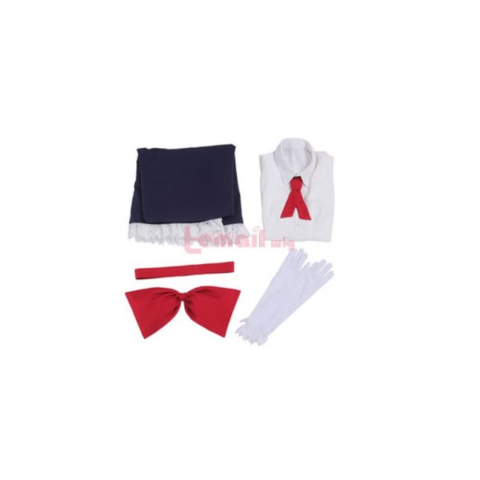 Features: This costume is based on the role Tohru in the new anime Miss Kobayashi’s Dragon Maid. Same with the character, we use pure white/blue/red fabric to make this costume to show the role’s lovely nature. Beside the same color, same garment style, we also have some details to make it more close to the character setting. By taking out darts, the white shirt can fit girls’ bust better than common white shirt. In another words, it will make your bust look bigger in visual. Classic high waist A-line dress can fit to most kinds of bodyshape. It just show your slim waist . Red belt is like a cut-off line which stresses your slim waist once more. Big red bowknot behind your waist adds a little sweet feeling. You can also see the exquisite lace hem in your dress. Besides cosplay, it is also quite comfortable to wear it in your daily life. It is a kind of beauty between mature women and childish girls. Everything is perfect . Just wait for you to put them on.