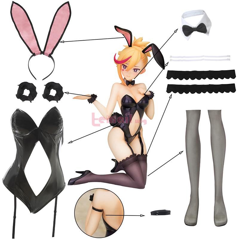 Included: Jumpsuit, collar, bow tie, bracelet, armband, shoulder strap, rabbit ear hair band, leg circle, socks