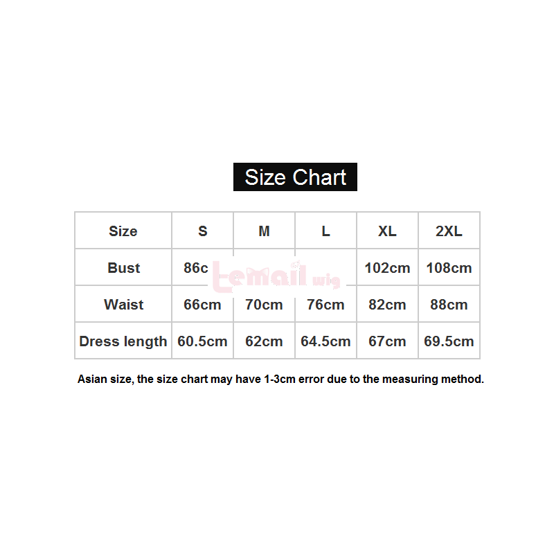| Dress length | 60.5cm | 62cm | 64.5cm | 67cm | 69.5cm |
