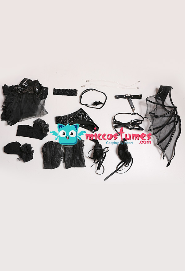 Design details: The top and panty are made of black pu leather, and the sleeves are made of black lace cloth. The wings are translucent. Leg rings and socks are exquisitely crafted. The headdress is completely restored to the human design. The devil angle is exquisite and lovely, and the size can be adjusted.
