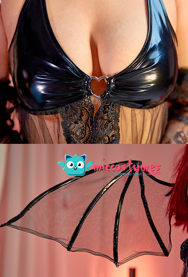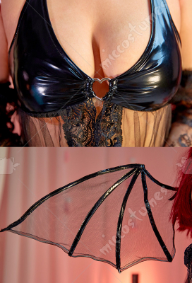 Design details: The top and panty are made of black pu leather, and the sleeves are made of black lace cloth. The wings are translucent. Leg rings and socks are exquisitely crafted. The headdress is completely restored to the human design. The devil angle is exquisite and lovely, and the size can be adjusted.