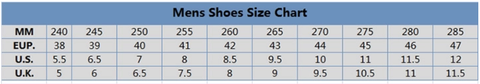 | Shoes Size | #38(24cm), #39(24.5cm), #40(25cm), #41(25.5cm), #42(26cm), #43(26.5cm), #44(27cm), #45(27.5cm), #46(28cm), #47(28.5cm) |