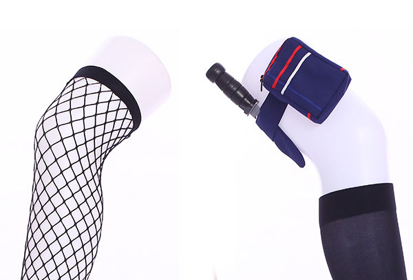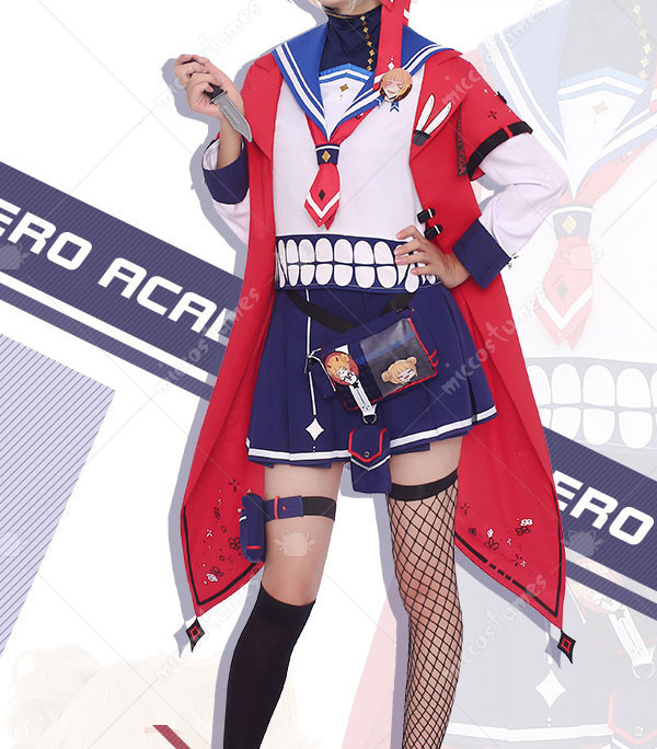 The costume includes shirt, skirt, coat, waist bag, net stocking*1, sock*1, thigh bag, headdress, clip, brands, base shirt. It is made of uniform cloth.