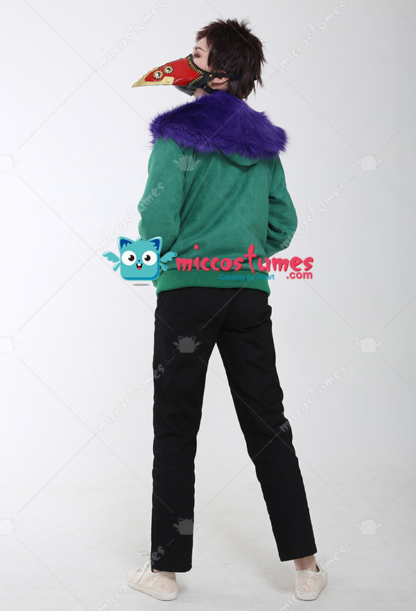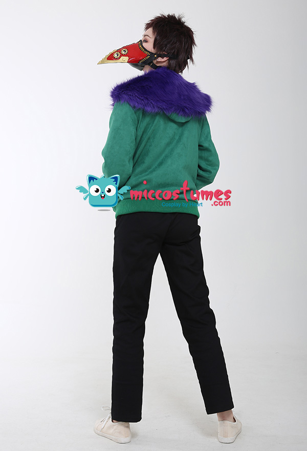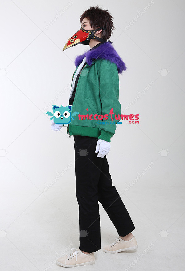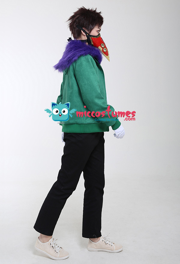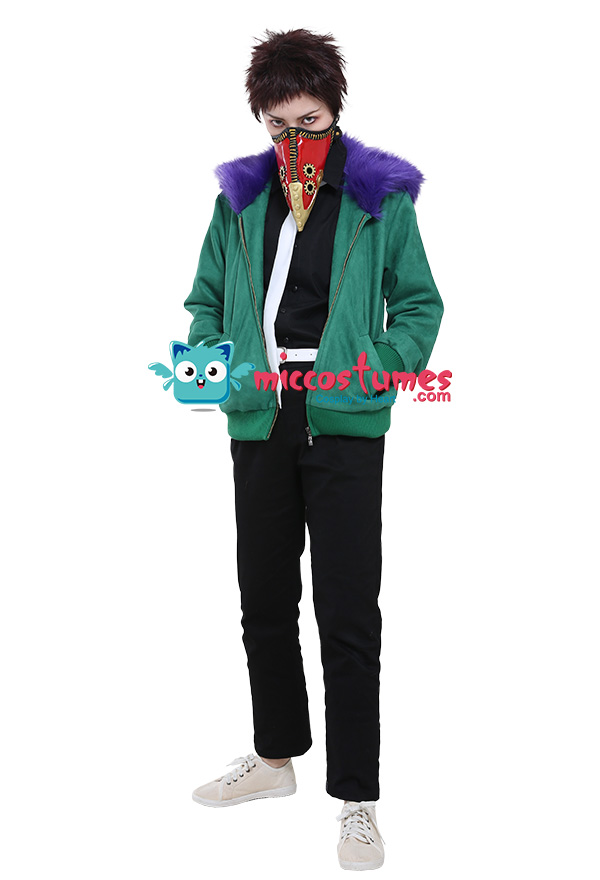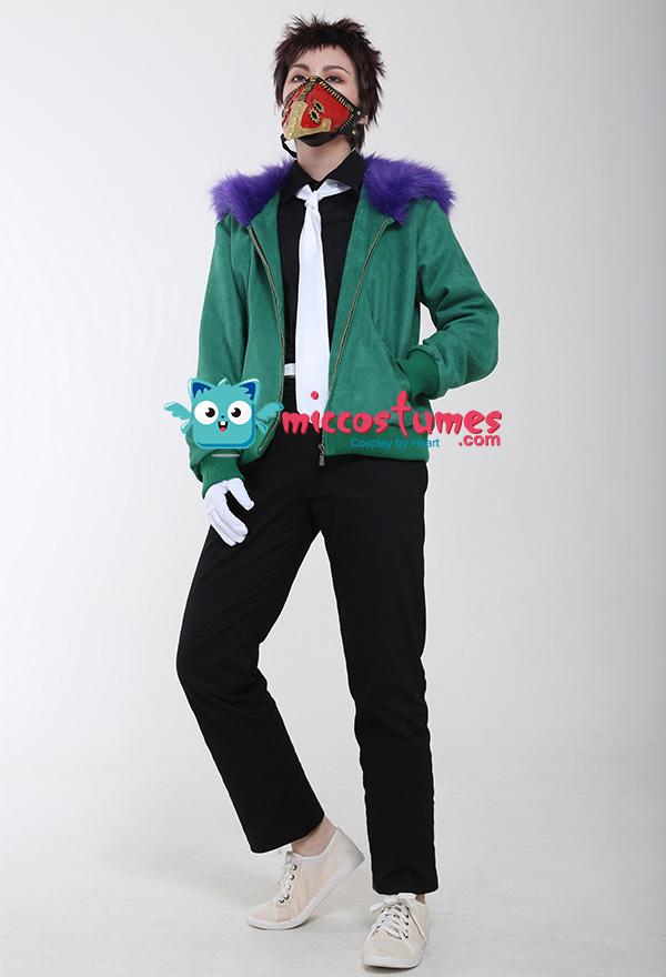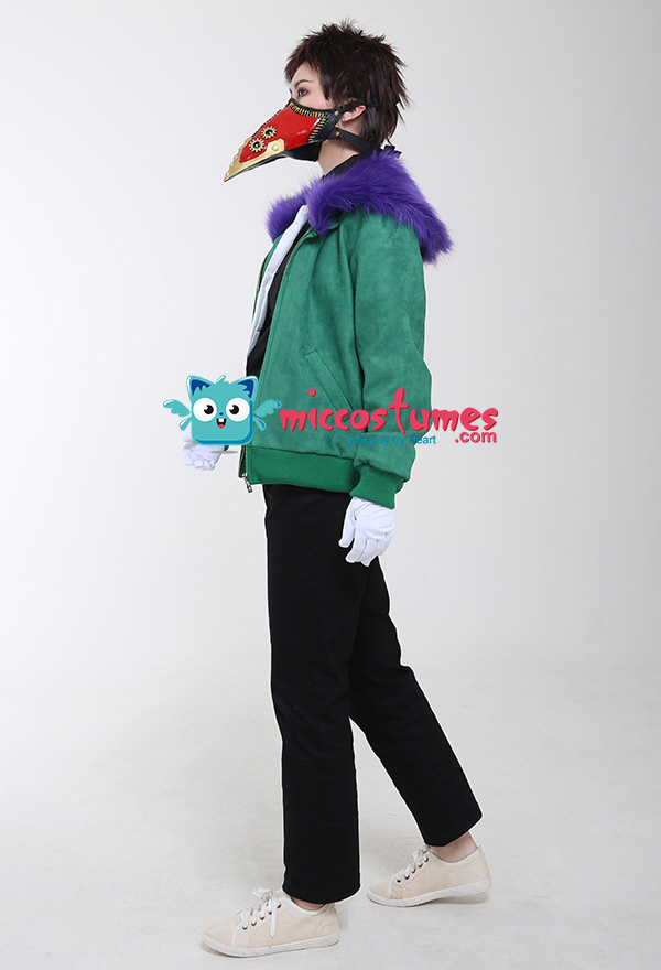 The costume includes hooded jacket, shirt, pants, glove*2, tie. It is made of spandex, chamois leather, linning cloth, imitated fox hair, shirt fabric, twill cotton fabric.