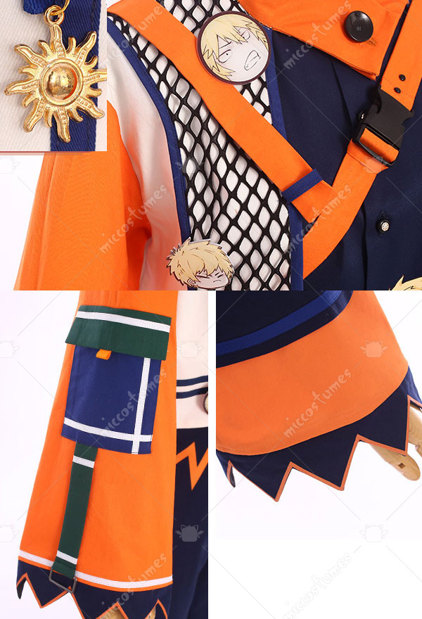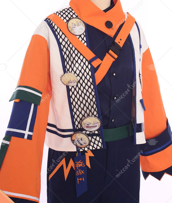 The costume includes coat, shirt, pants, bag, belt, pants accessory, clip, ear stud, badge. It is made of uniform cloth.