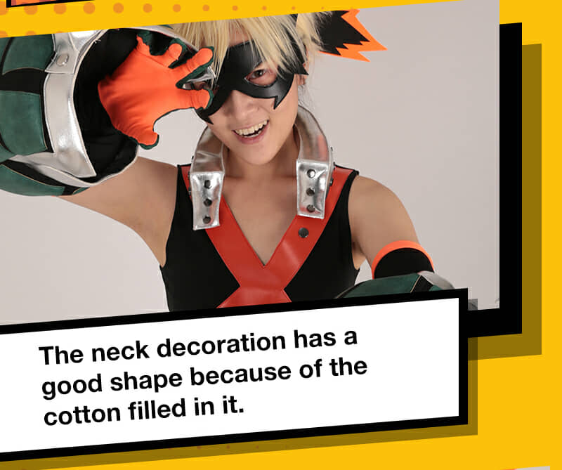 This costume includes sleeveless shirt, pants, two headpieces, eyemask, neckpiece, belt set, two gloves, two arm guards and two knee guards. It is made of uniform cloth, spandex and PU leather. Please note: the bazooka props need to be filled with fluffy items by yourself. It is recommended to use the items such as cotton or newspapers. There are invisible zippers on the inside of the bazooka props which is easier for you to add items. .jpg)