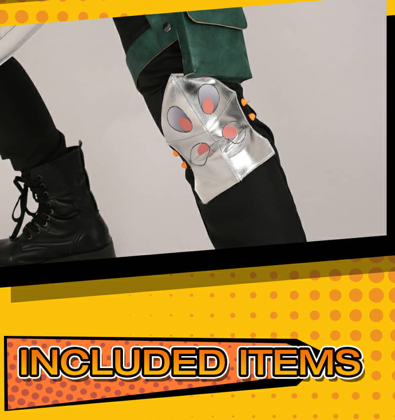 | Included Items | Sleeveless shirt, pants, two headpieces, eyemask, neckpiece, belt set, two gloves, two arm guards and two knee guards |