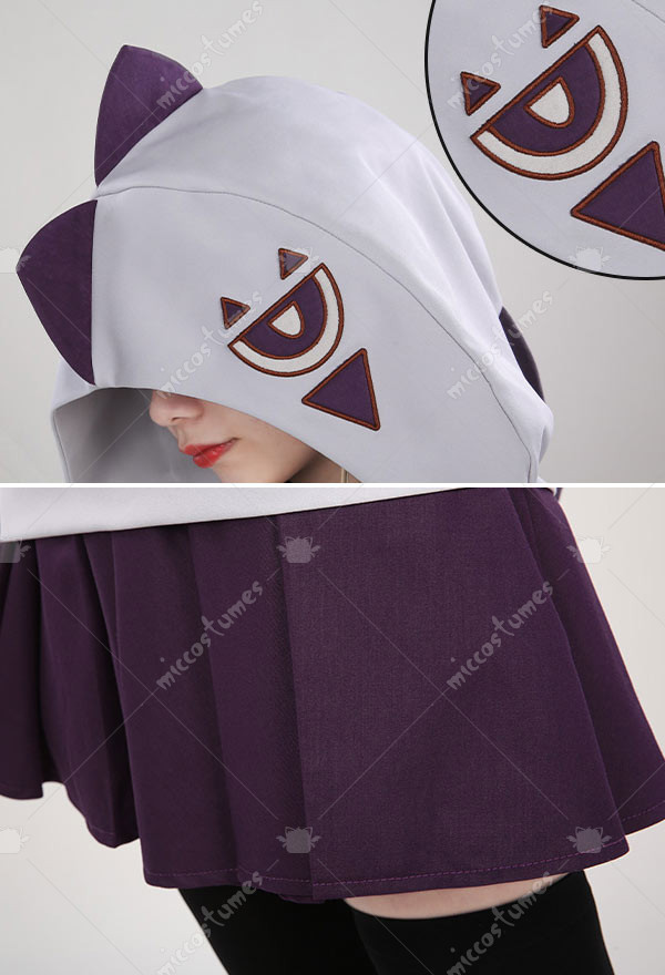 The costume includes hoodie, skirt, earrings, tattoo sticker.The hoodie is made of soft elastic fabric and the skirt is made of uniform fabric.