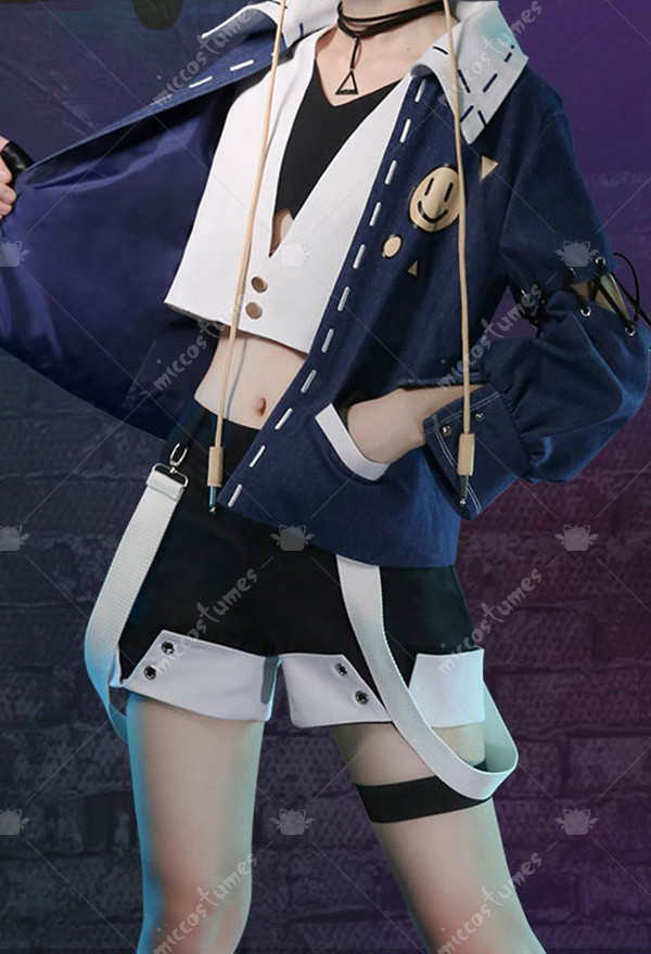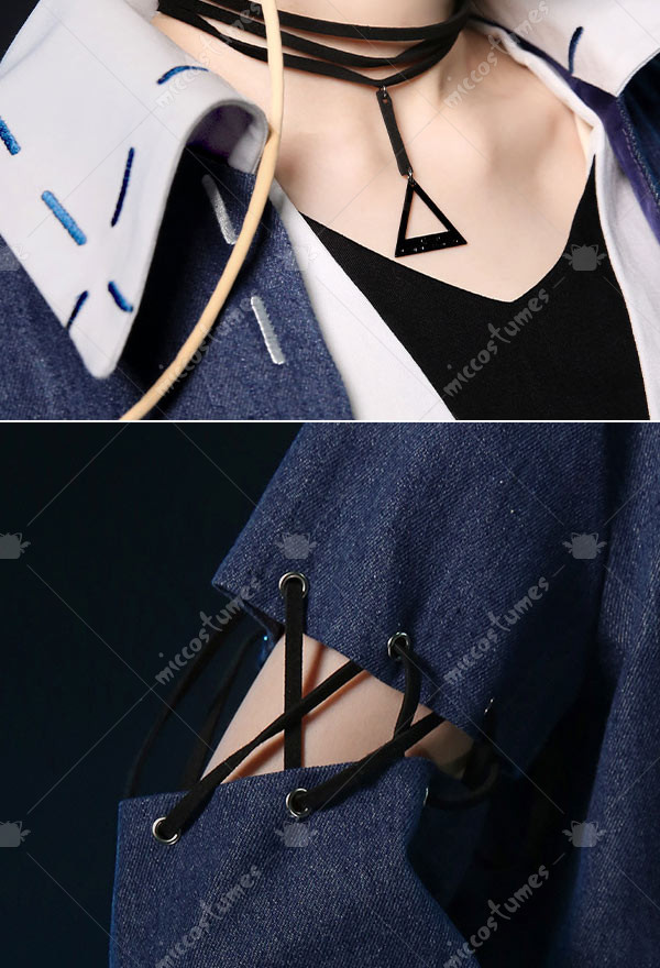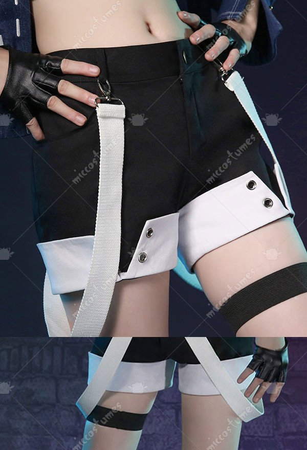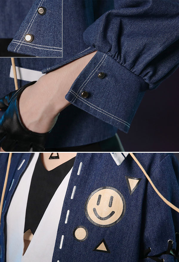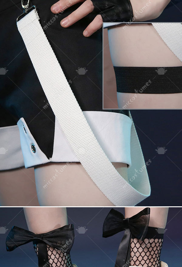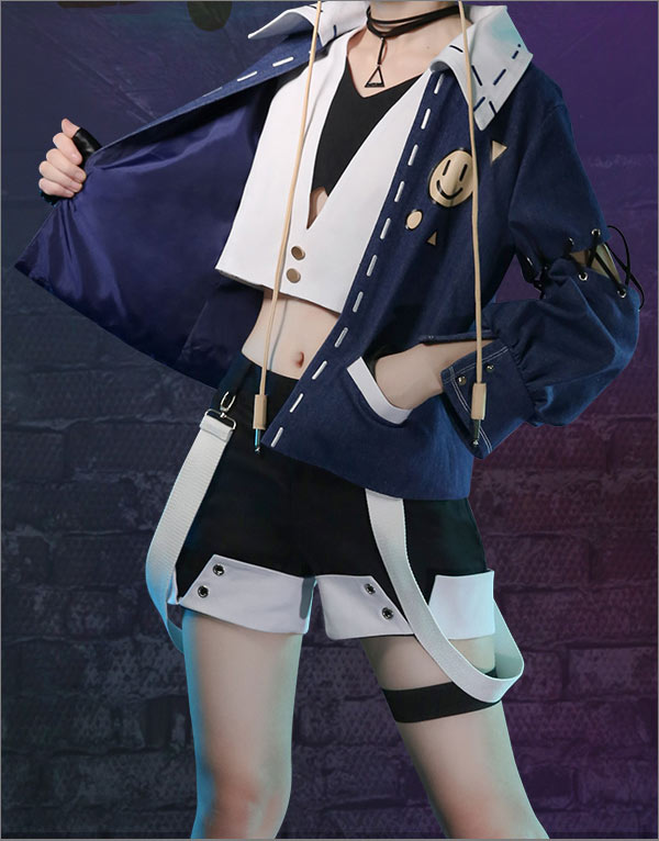The costume includes jacket, arm sleeves, waistcoat, gloves, shorts, straps*2, belt, bow stockings, thigh strap*1, headband, neck accessory*1, tattoo sticker, eardrops. The jacket is made of jean. .jpg)