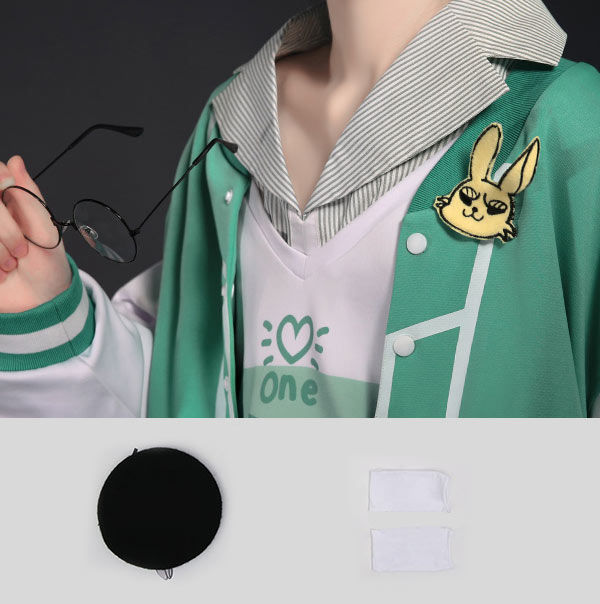 This costume includes coat, shirt, pants, hat, glasses, brooch, socks. It is made of blend fabrics.