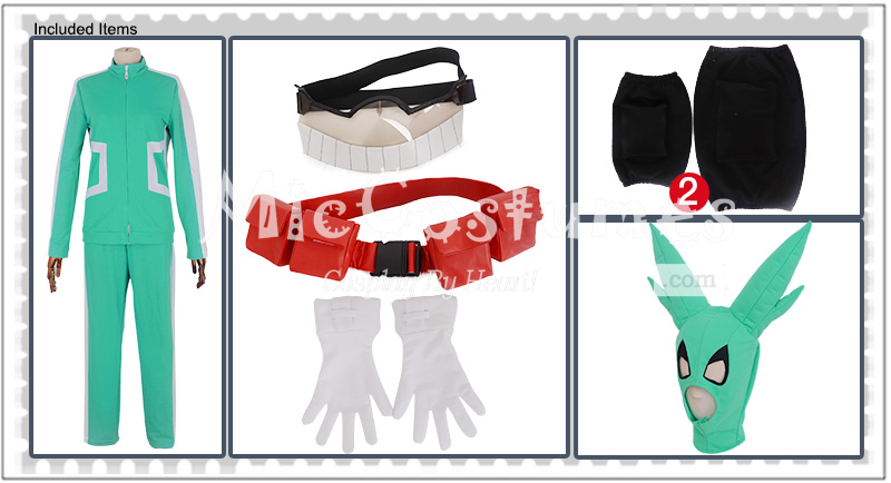 | Included Items | Top, pants, gloves, hoodie, mask, belt, knees, elbows |