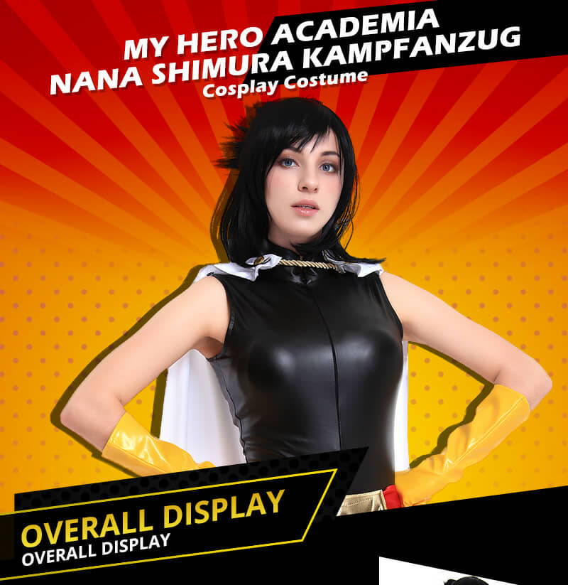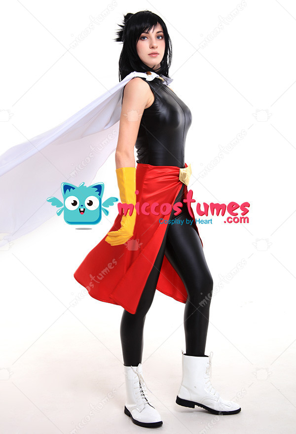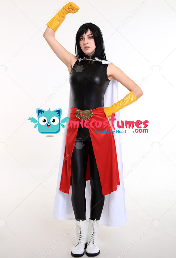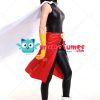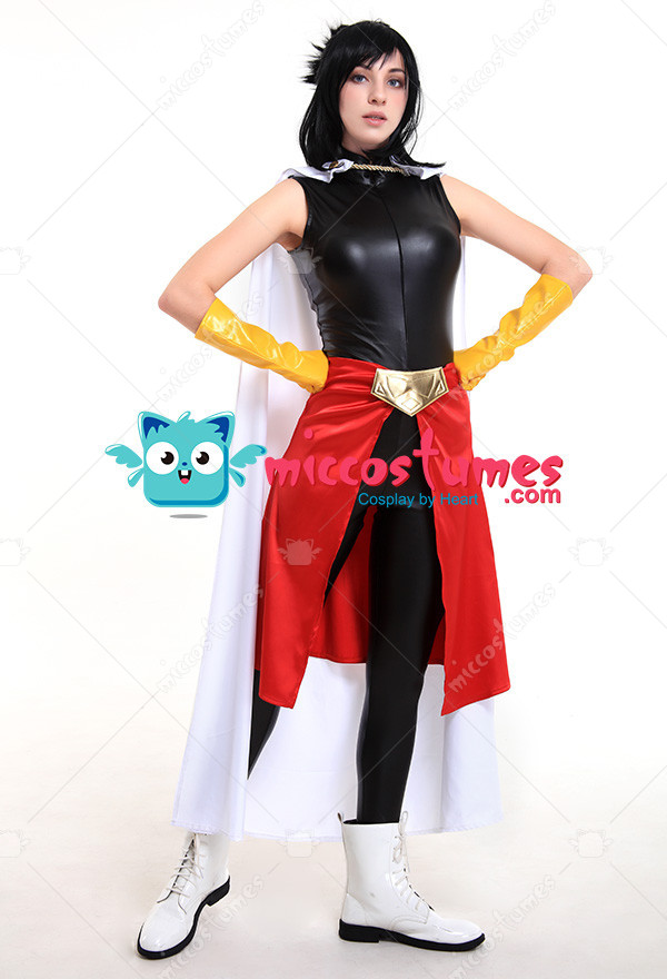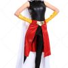 The costume includes cloak, upper garment, pants, gloves, apron. It is made of satin, PU leather, polyester.