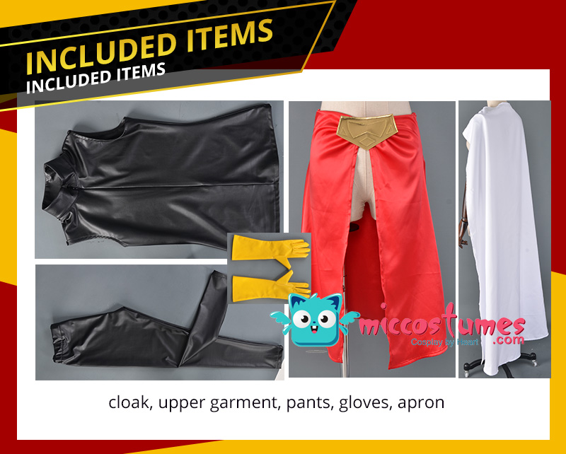 | Included Items | Cloak, upper garment, pants, gloves, apron |