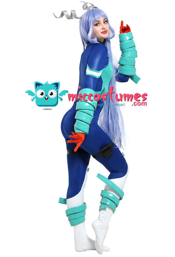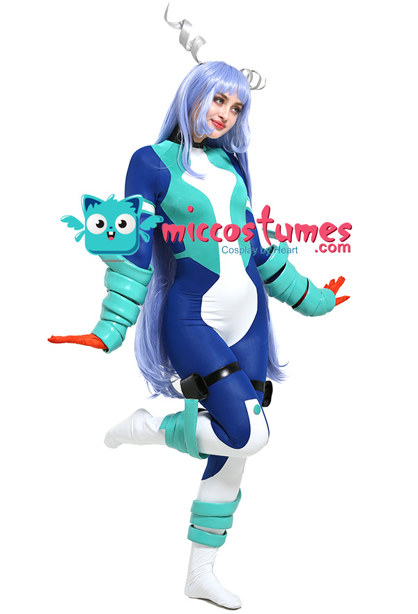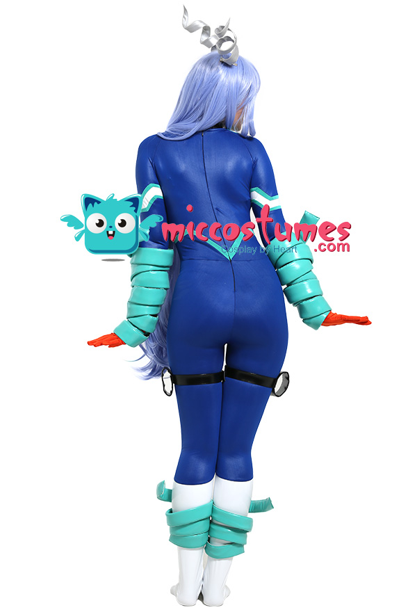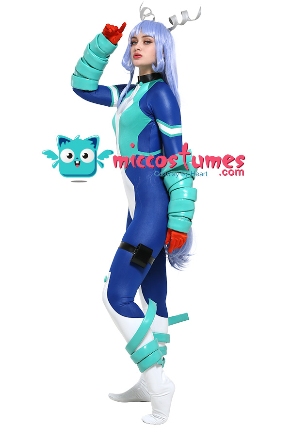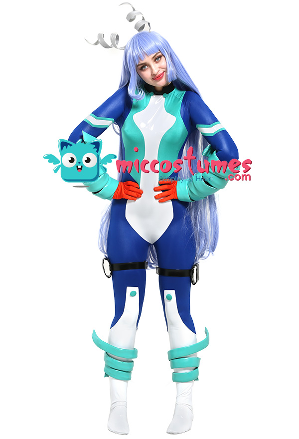 This costume includes jumpsuit, gloves×2, wrist accessories×2, leg holsters×2, headdressX2, leg accessories×2. It is made of spandex, PU leather.