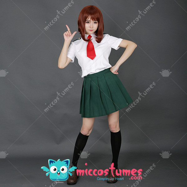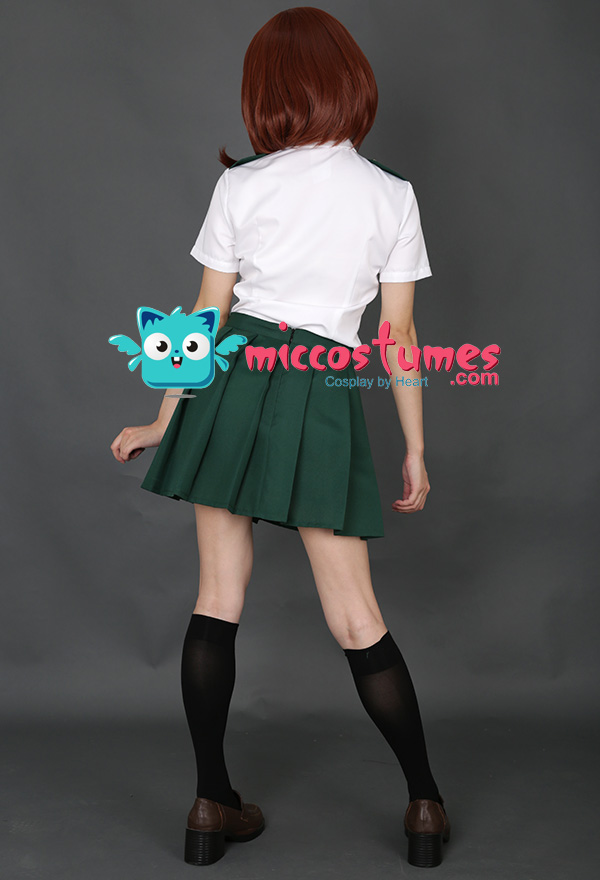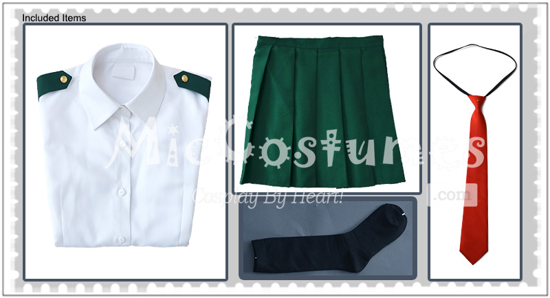 This costume includes shirt, tie, skirt and two black stockings. It is made of uniform cloth.