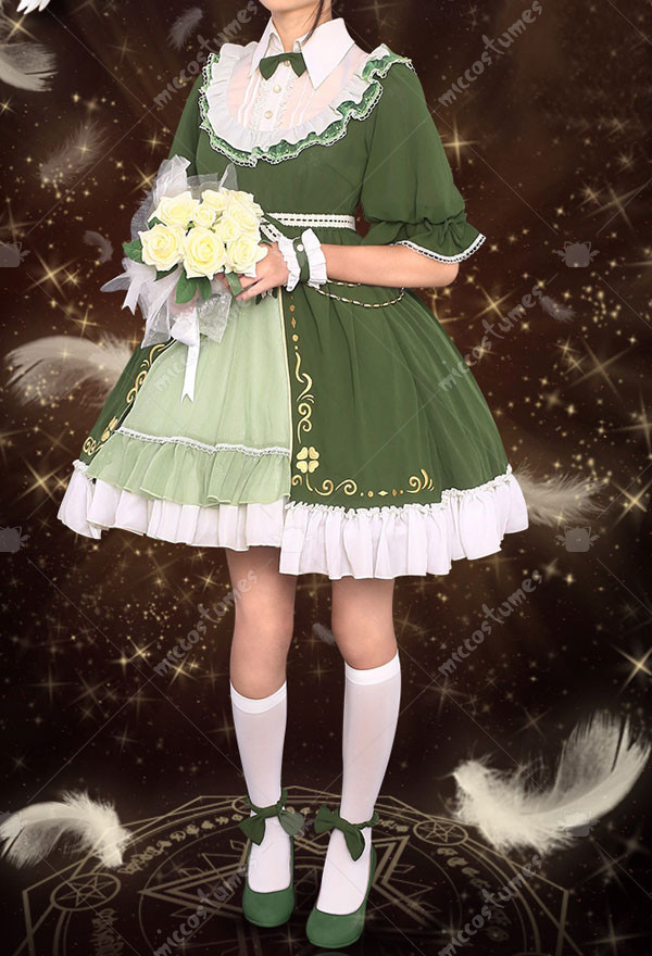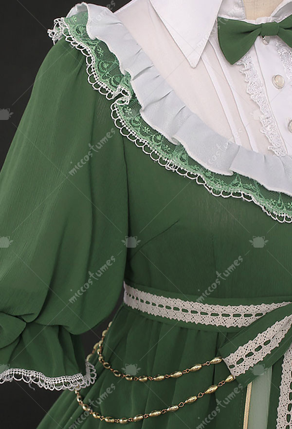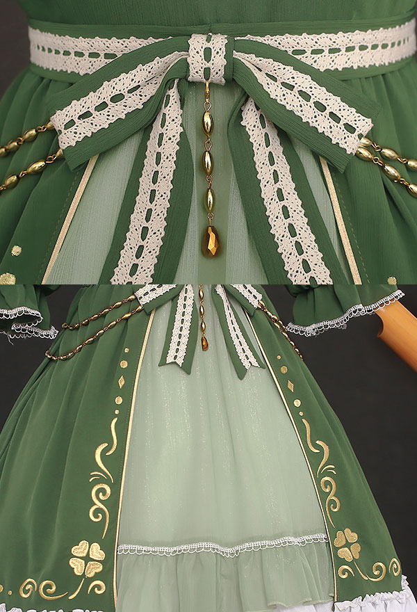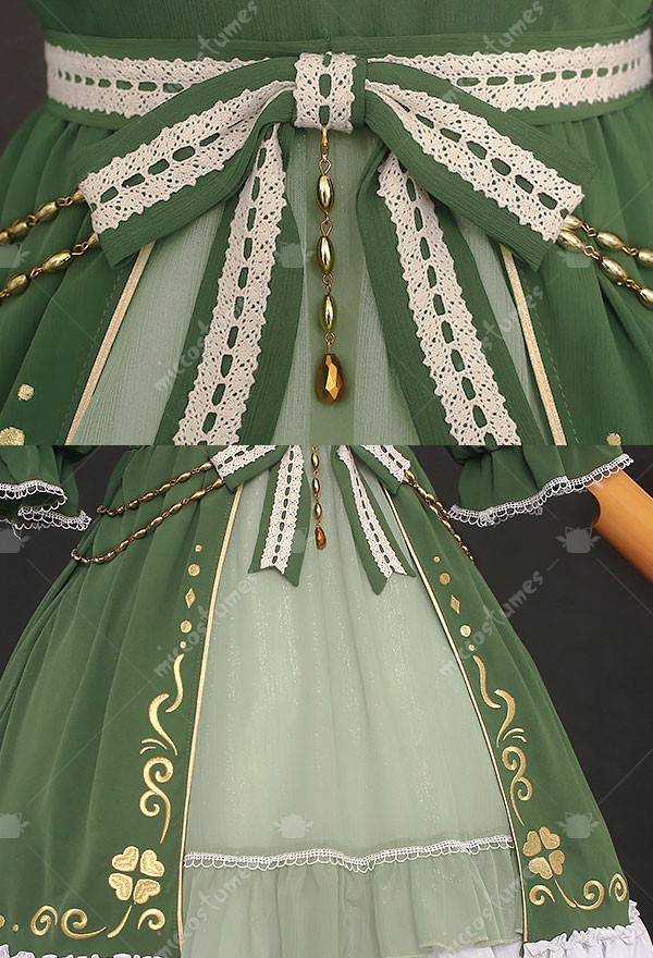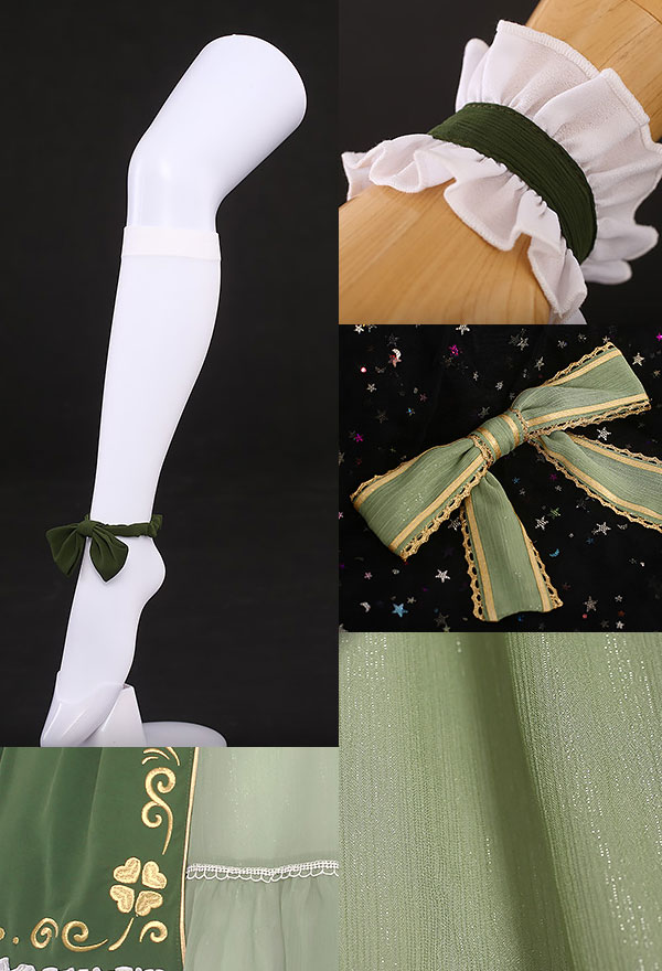 The costume includes dress, socks, tie, wristband*2, waist accessory*3, leg accessory*2, headdress. It is made of chiffon, gauze.