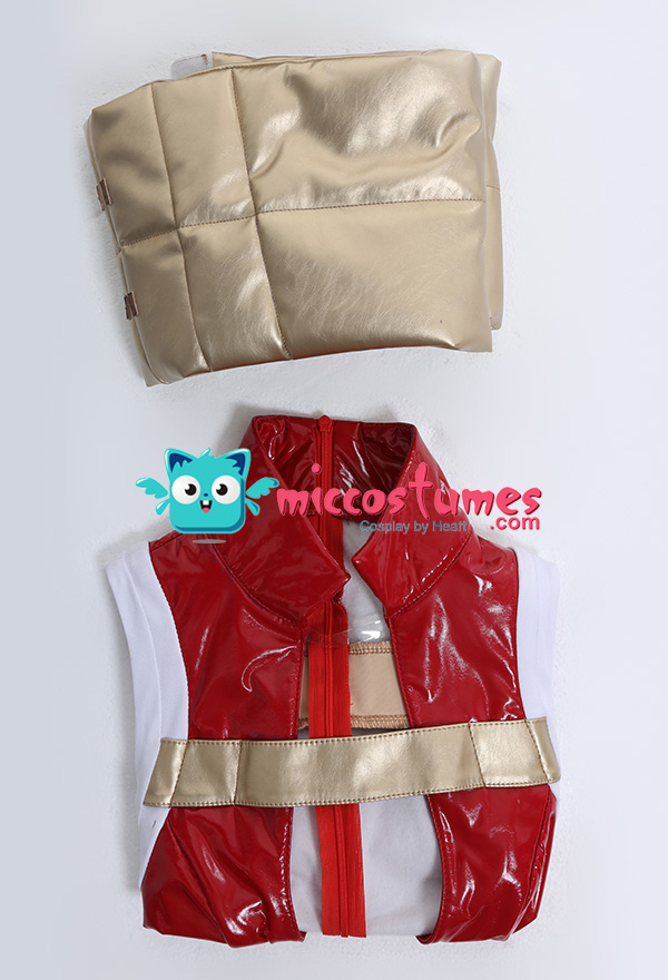 Costume Includes: battle suit, hip belt. Material: spandex, pu leather. Design Details: The hip belt is equipped with velcro on the back for adjustment.