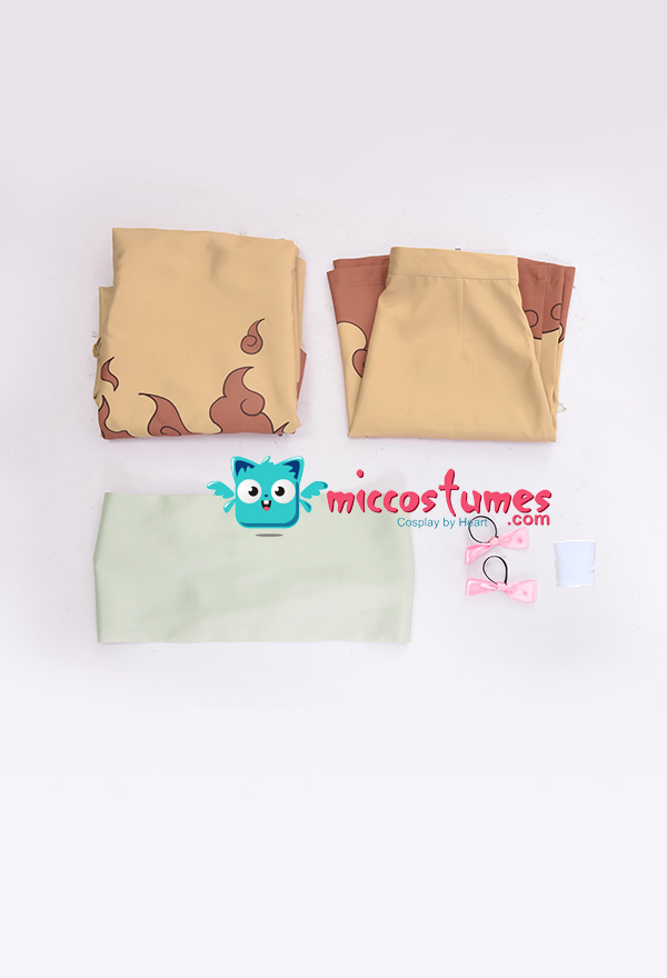 The costume includes top, skirt, belt, hair tie*1, headdress*2. It is made of uniform cloth, spandex.