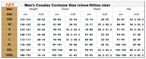 1): Our costumes are made in a variety of different materials with specialized stitching and parts, so your usual size will not apply here.