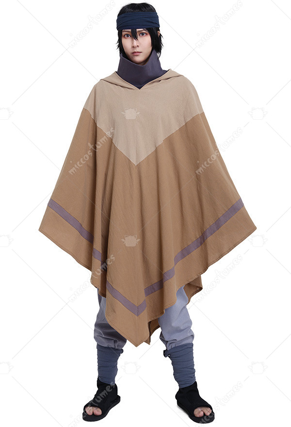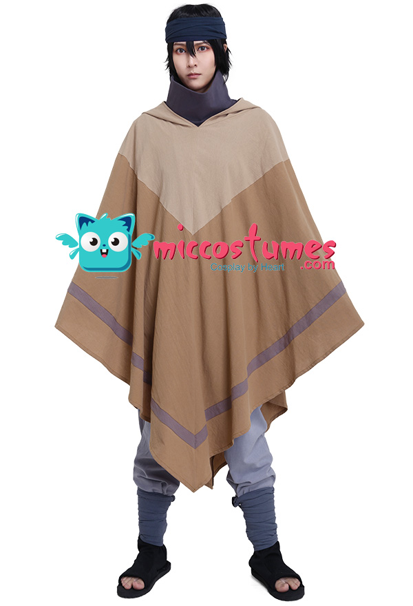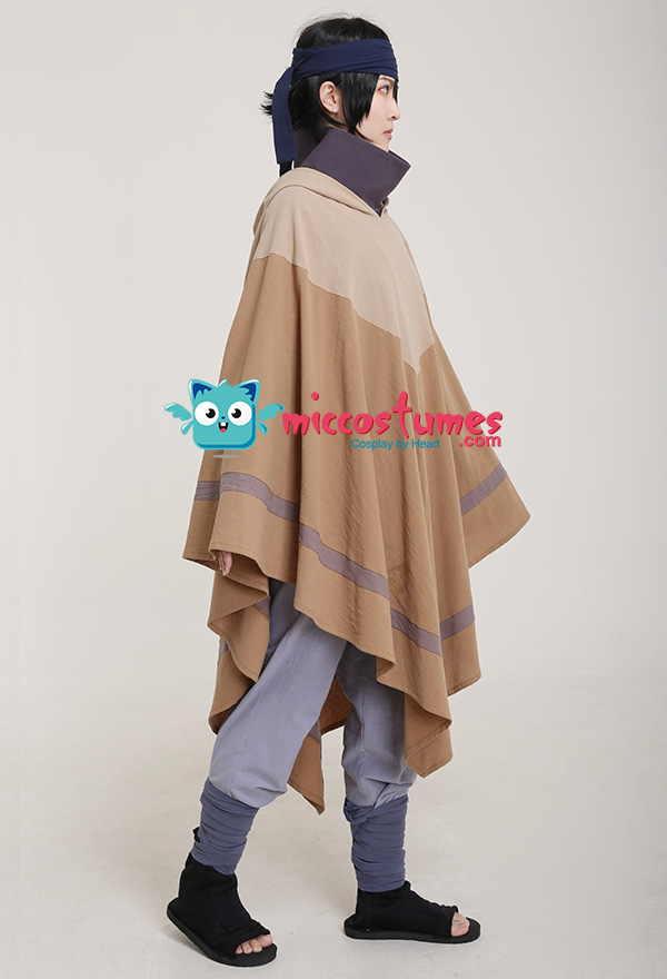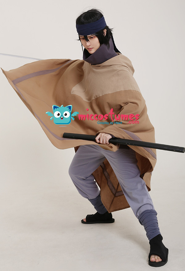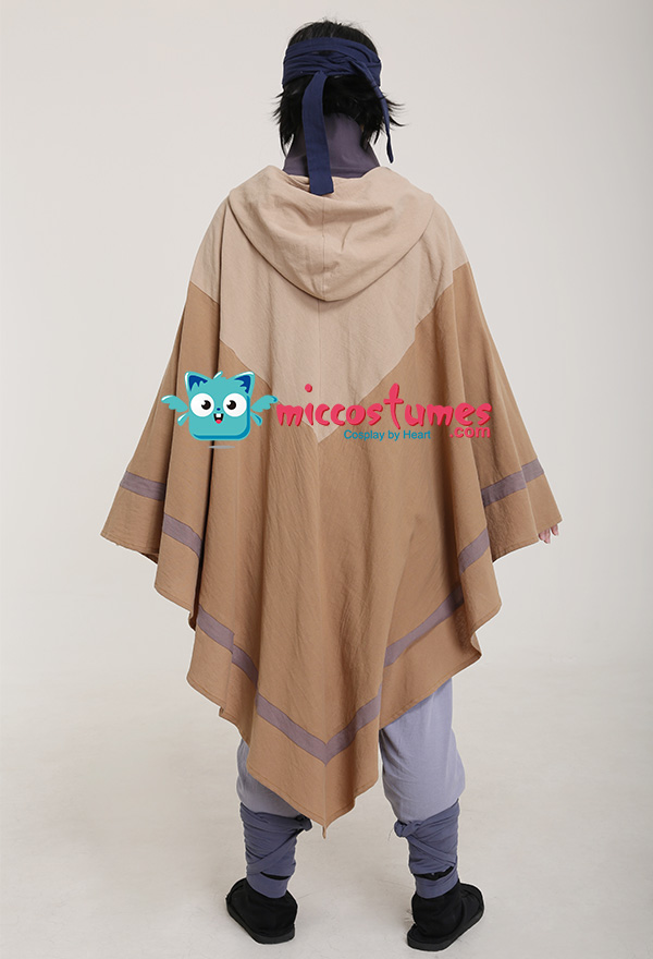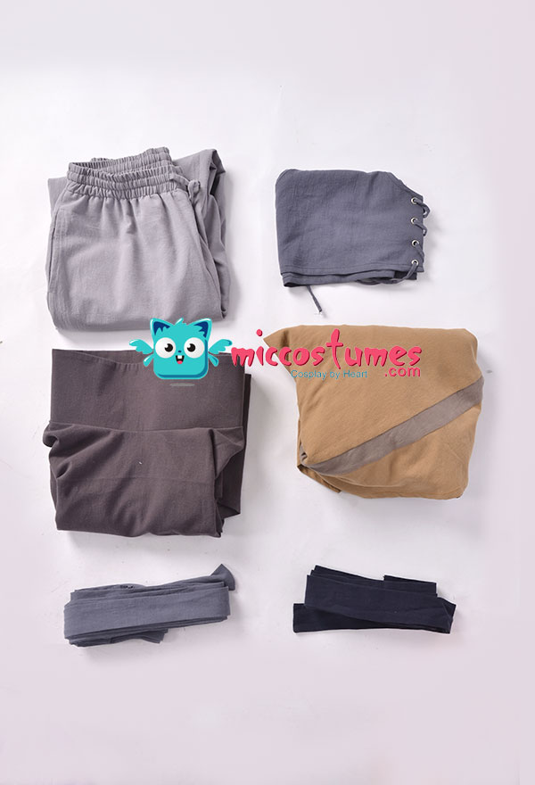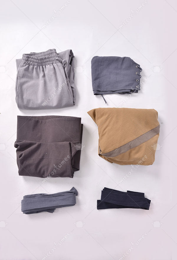 The costume includes cloak, base shirt, vest, pants, arm strap*2, leg strap*2.It is made of cotton.
