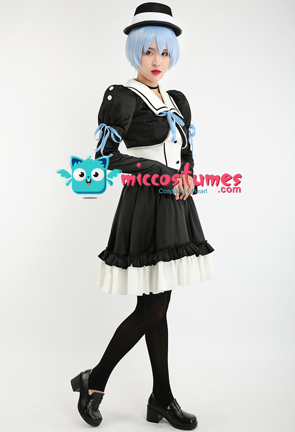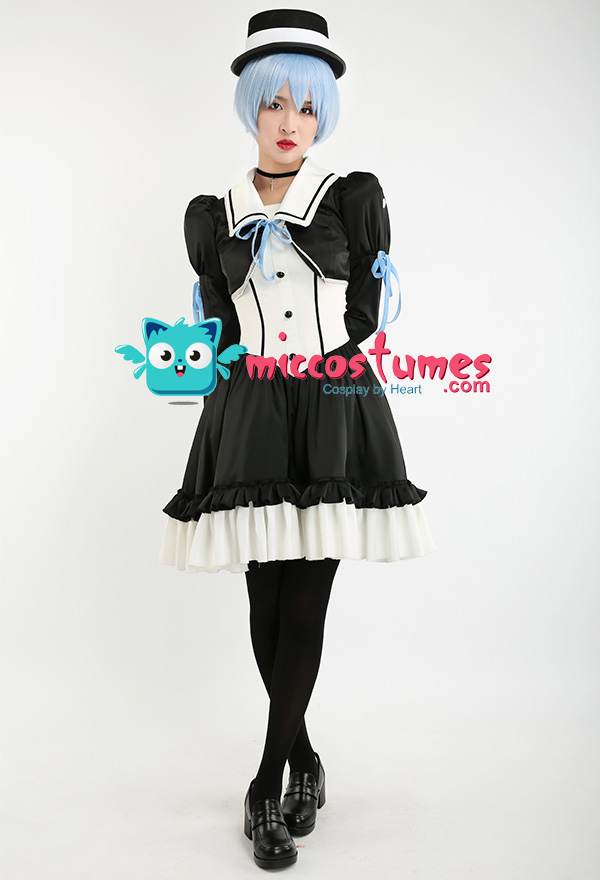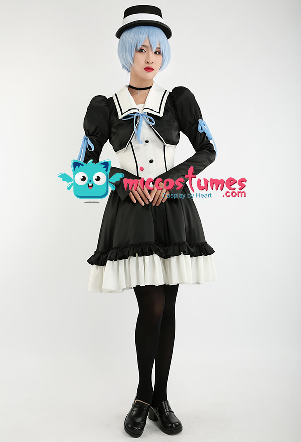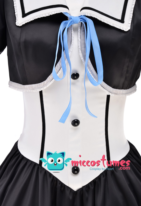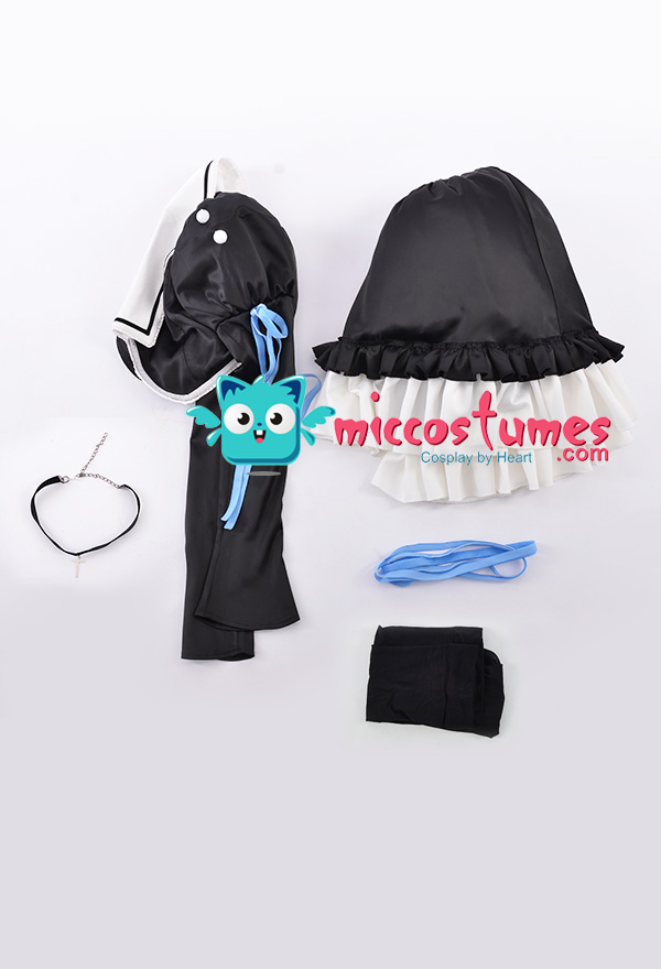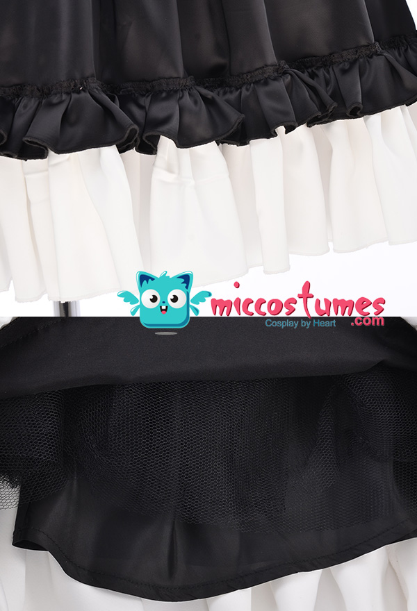 The costume includes dress, short coat, choker, pantyhose. It is made of satin, lining, hard net fabric, alloy.
