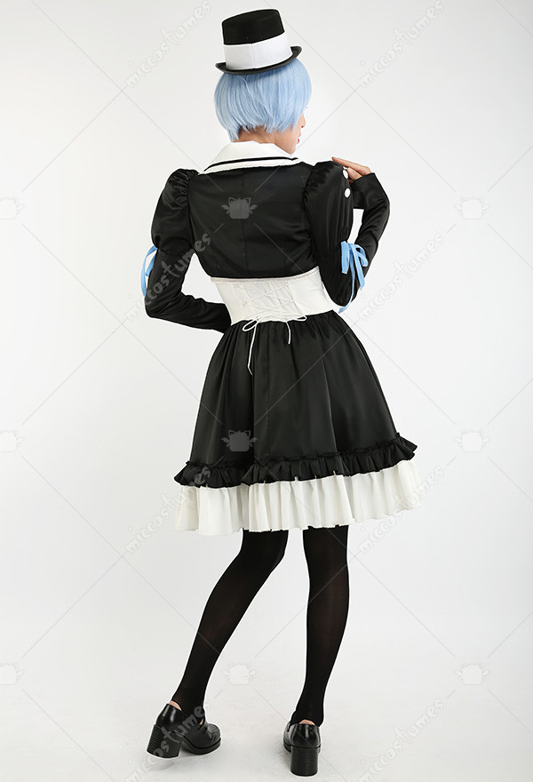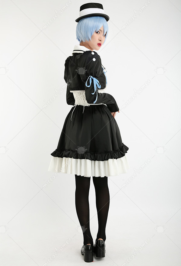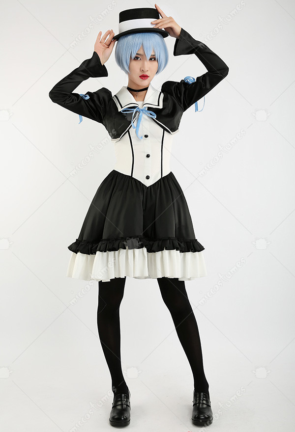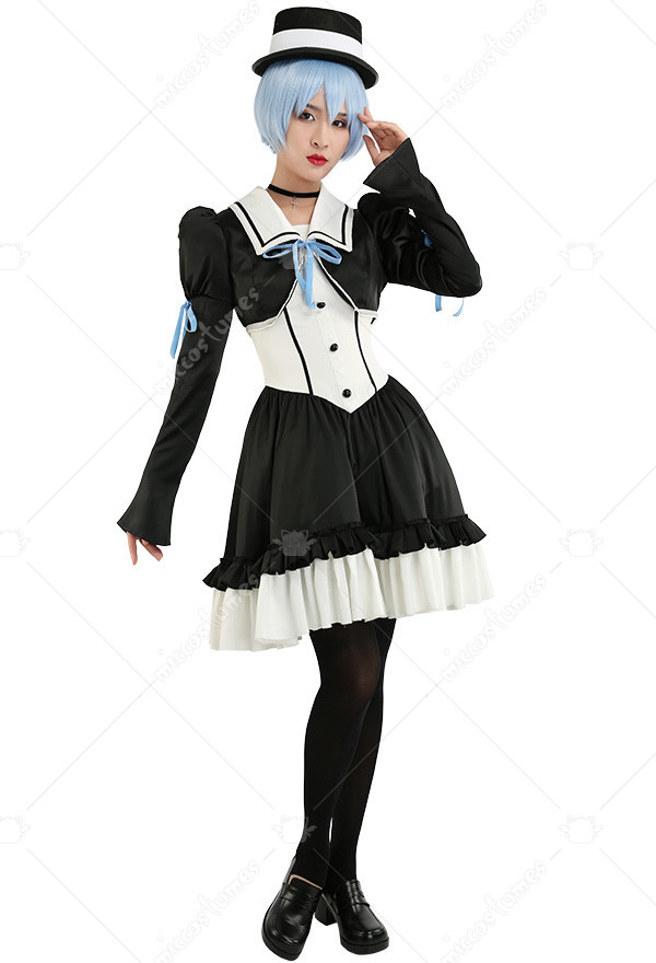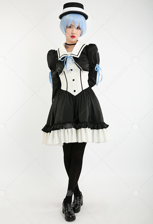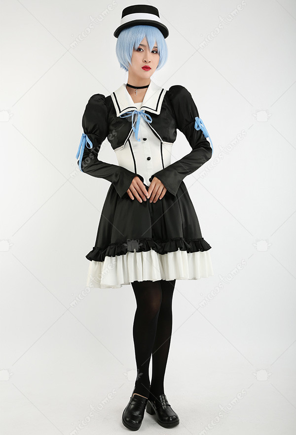 The costume includes dress, short coat, choker, pantyhose. It is made of satin, lining, hard net fabric, alloy.