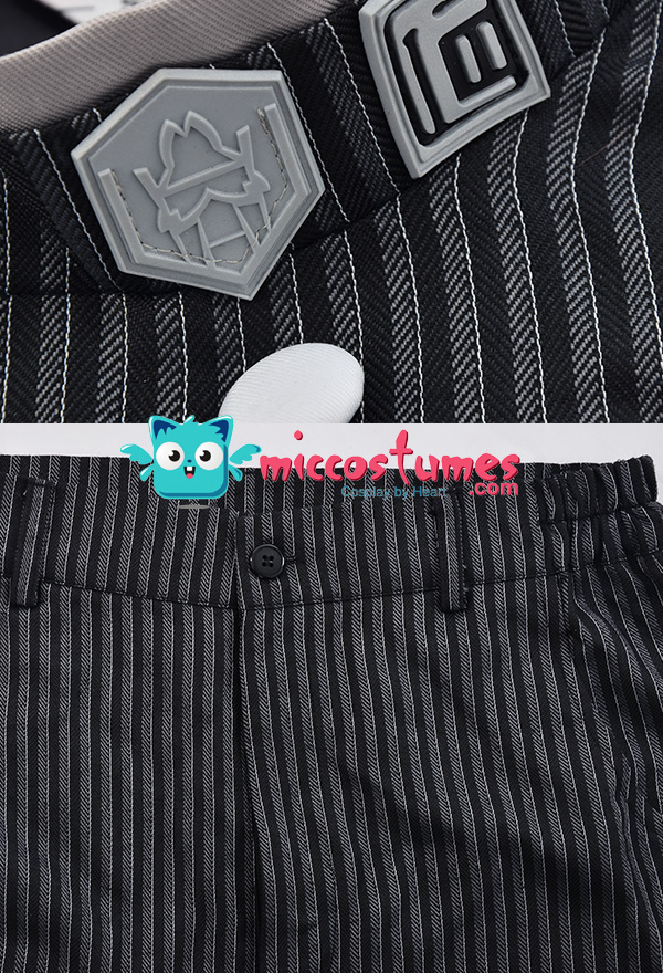 The costume includes coat, pants and cap. It is made of uniform cloth, PU leather, lining.