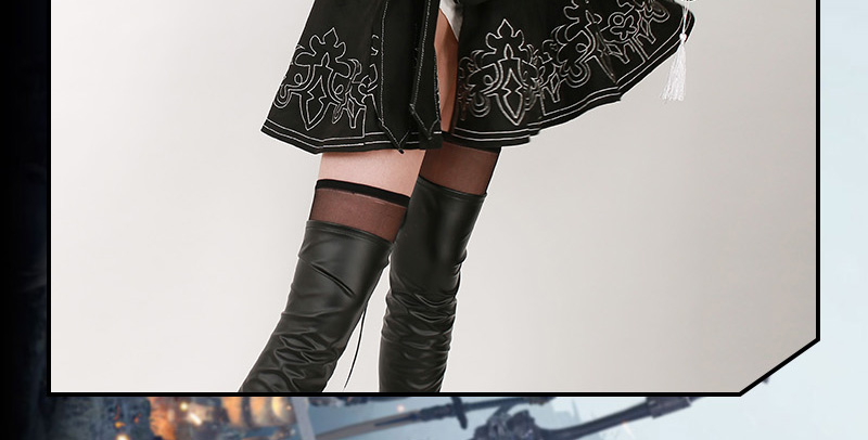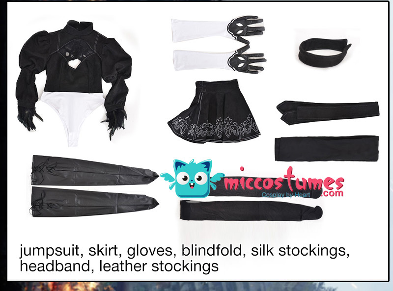 | Included Items | Jumpsuit, skirt, gloves, blindfold, silk stockings, headband, leather stockings |