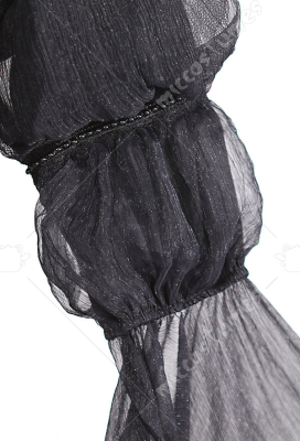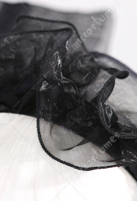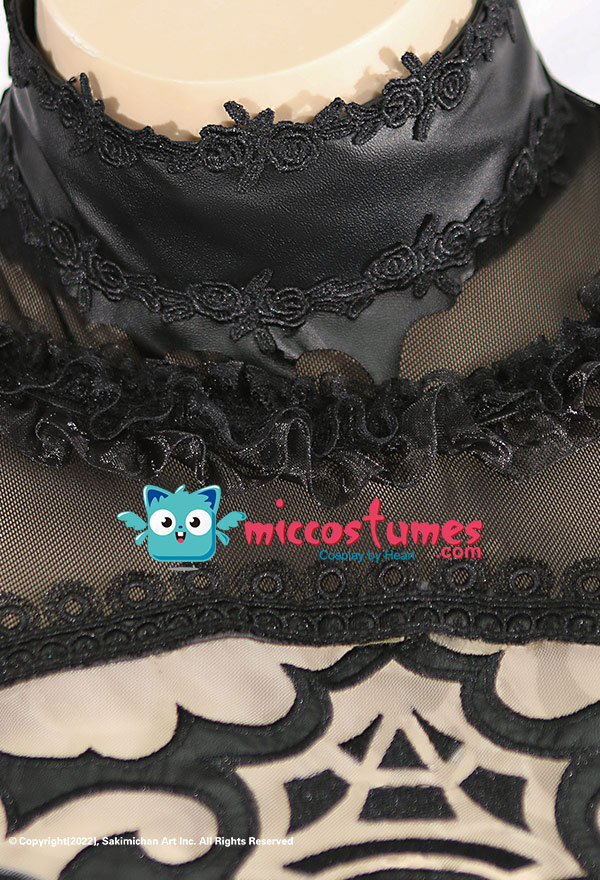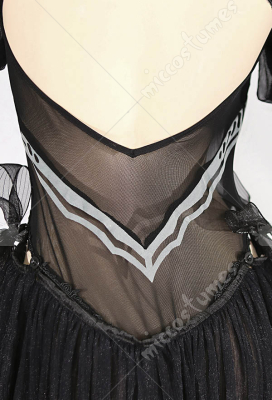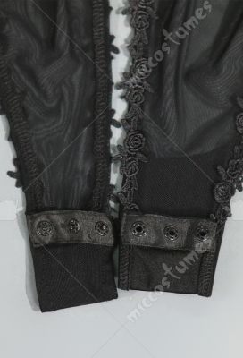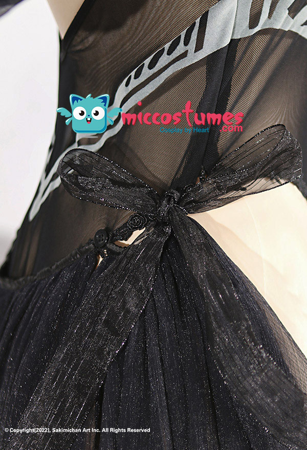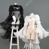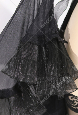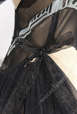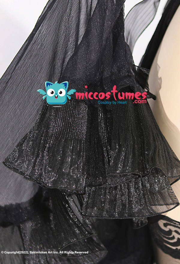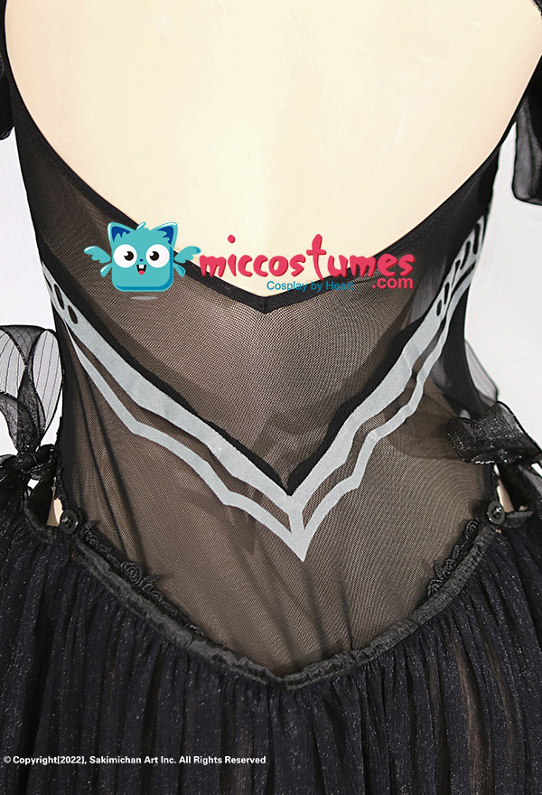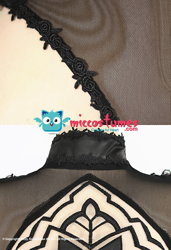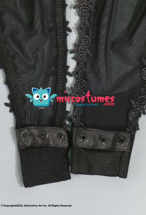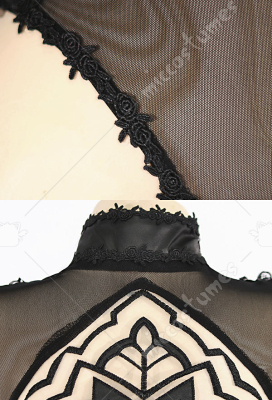 Design Details: The translucent tulle fabric is used above the chest and a layer of lace is added over matte pu leather on the chest. The hard mesh fabric is added to the puff sleeves. The whole body uses 30 meters of lace. The back is made of the same craftsmanship as the front. The tail is made of double-layered crepe, which has an airy feel.