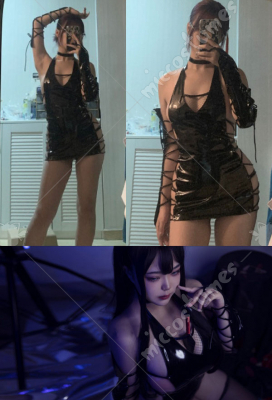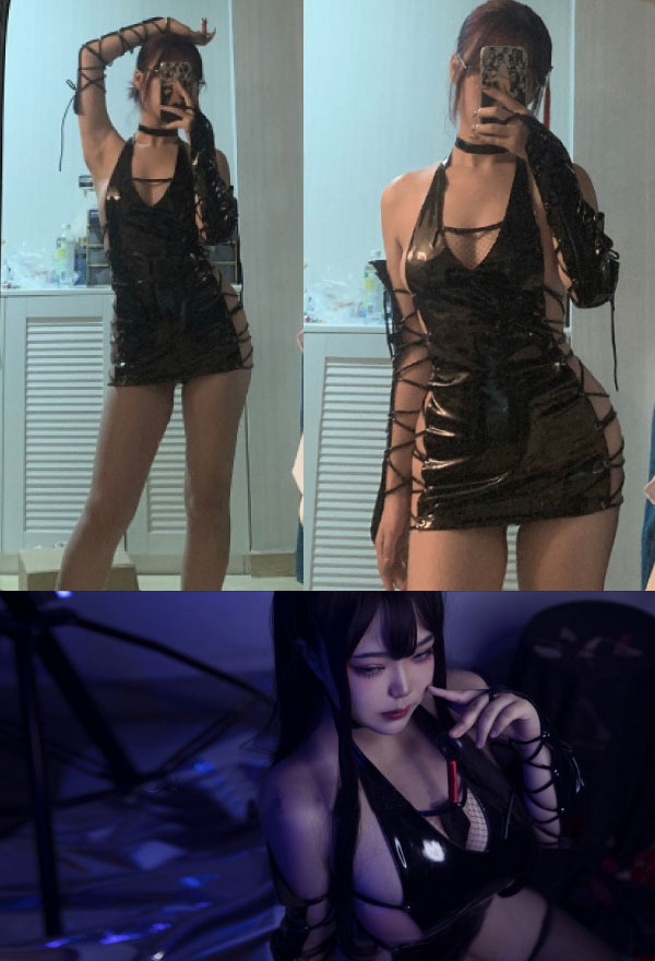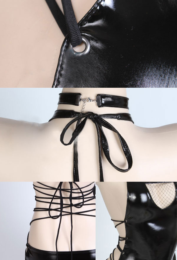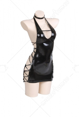 The costume inlcudes choker, dress, glove*2, stockings. It is made of patent leather.