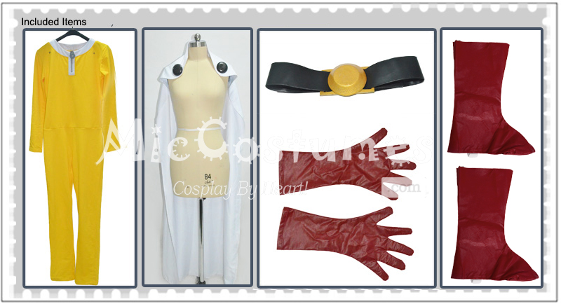 | Included Items | Jumpsuit, cape, belt, gloves, boot covers |