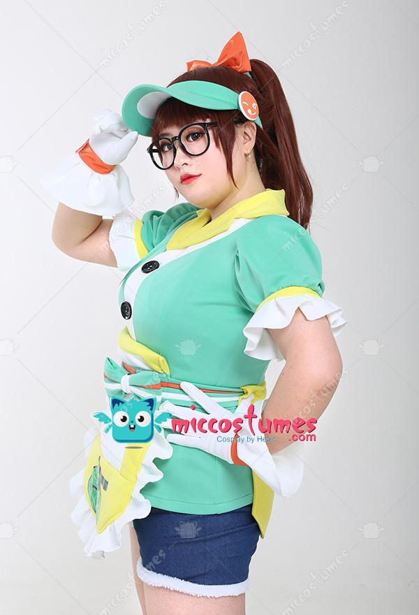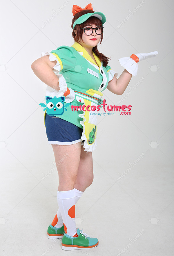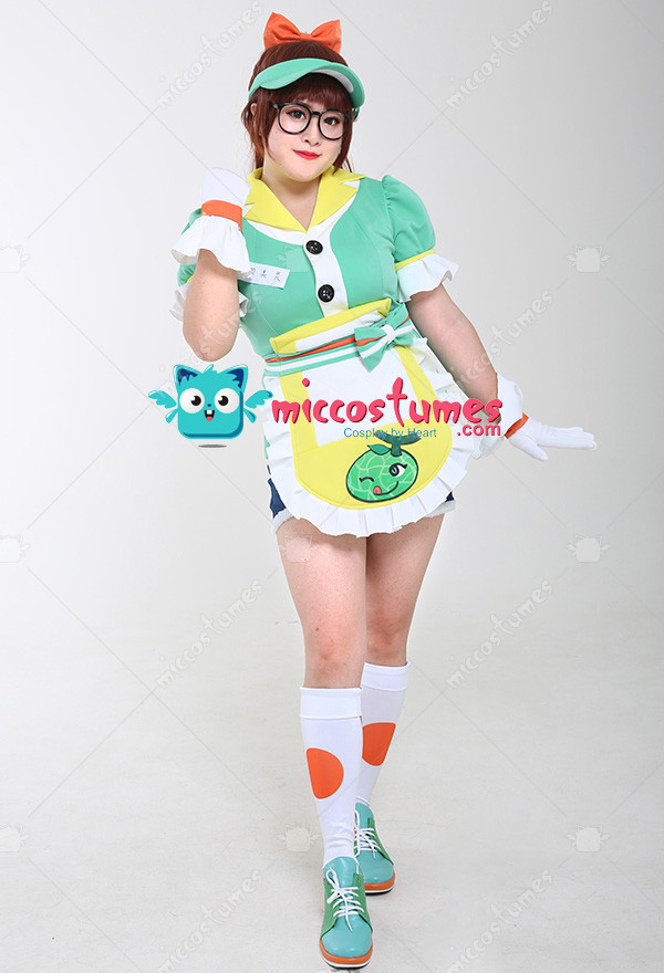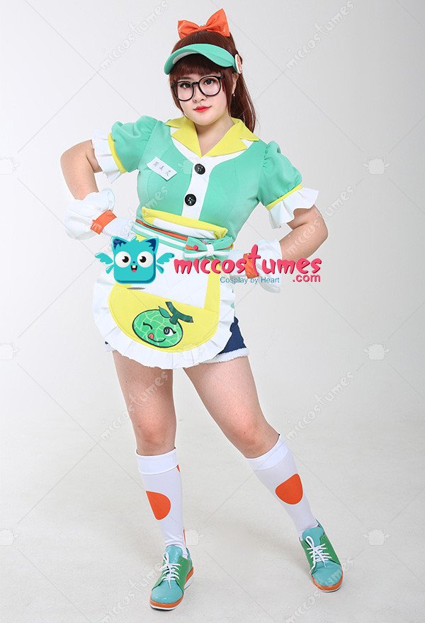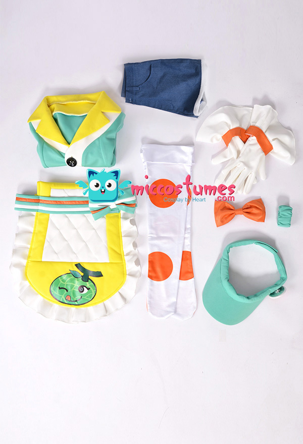 The costume includes shirt, shorts, apron, hat, glove*2, head bowknot accessory*1, hair circle*1, socks*2, waist bowknot accessory*1. It is made of scuba fabric, Fil-Lumiere cotton, jean fabric, polar fleece.